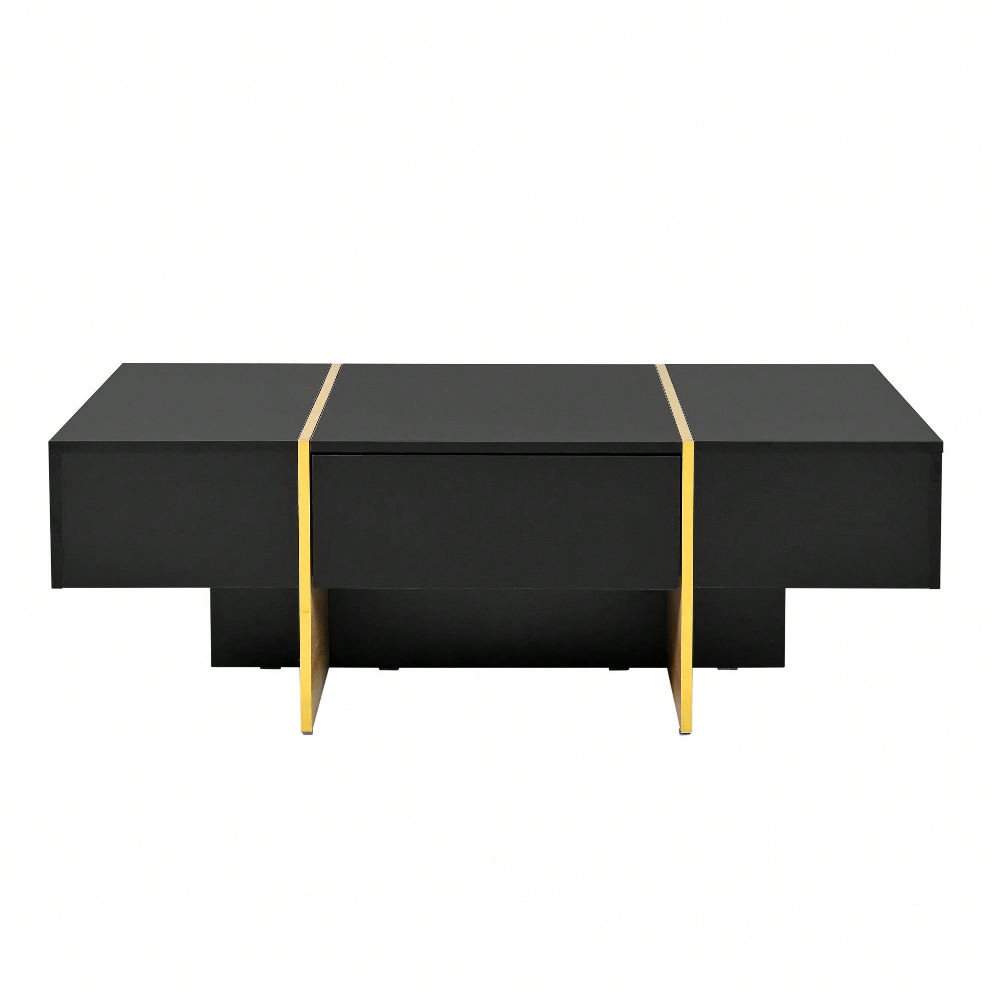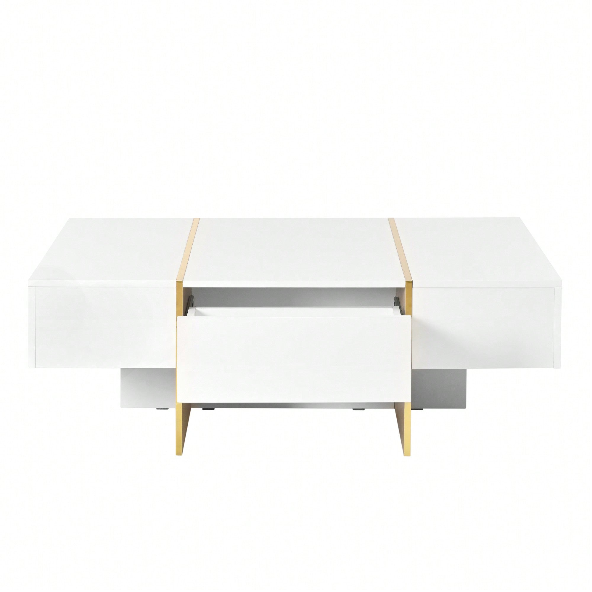 Elegant White High Gloss Coffee Table with Drawers and Gold Legs 47.2 x 31.4 Multi-Storage Center Table for Living Room