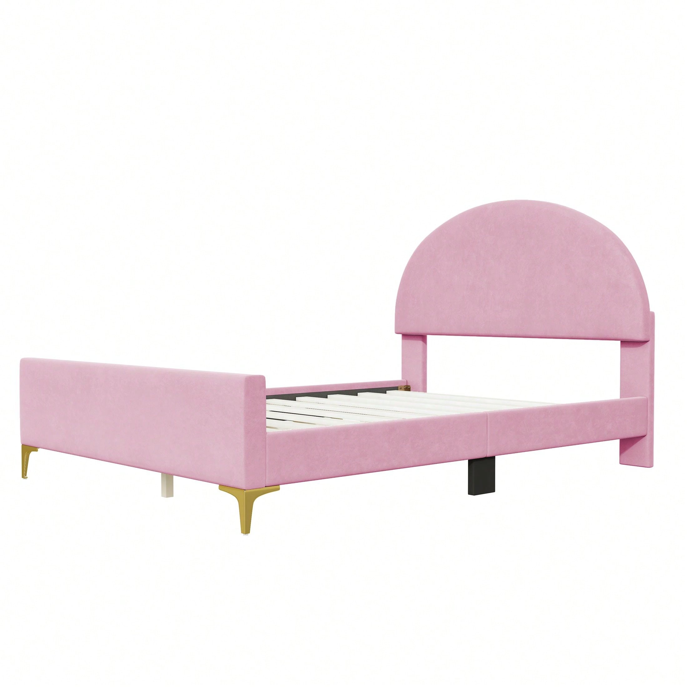Full Size Upholstered Platform Bed With Classic Semi-Circle Shaped Headboard And Metal Legs