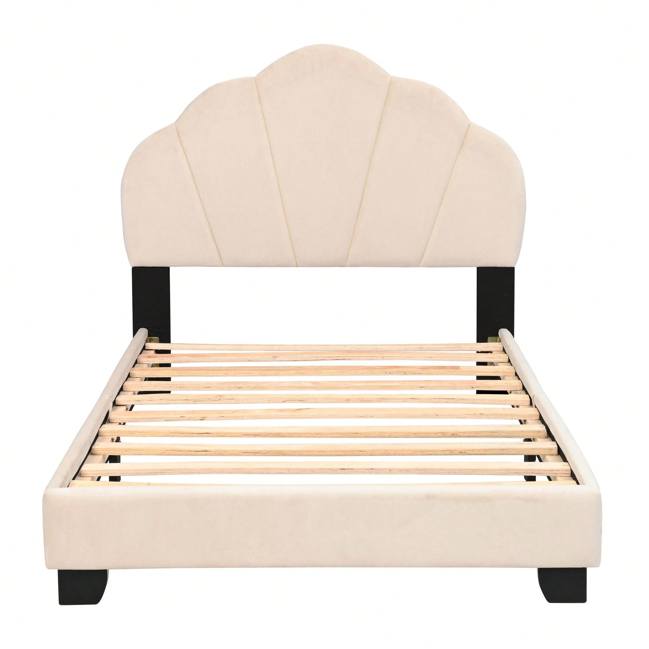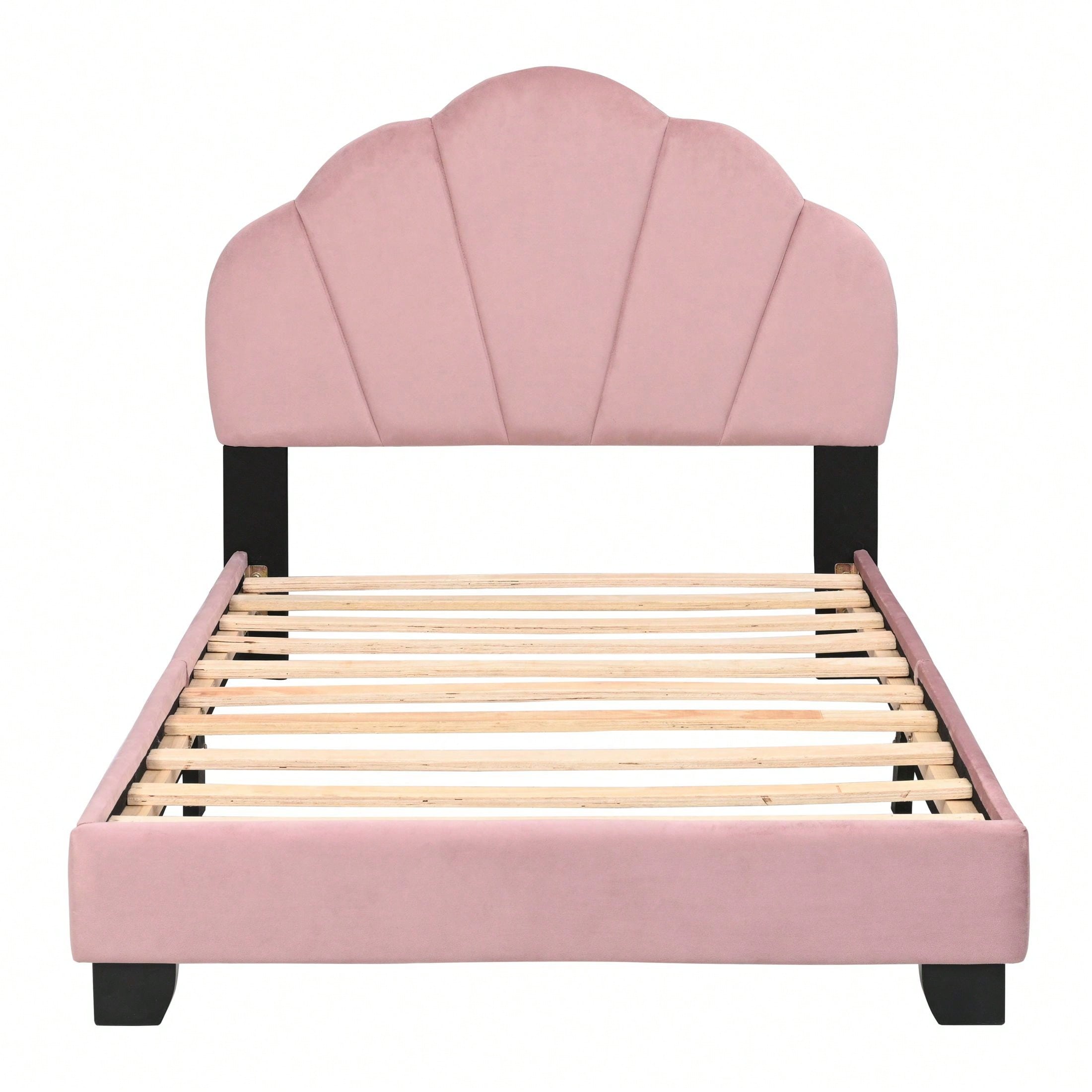 Twin Size Platform Bed For Kids, With Slatted Bed Base, No Box Spring Needed, Shell Design