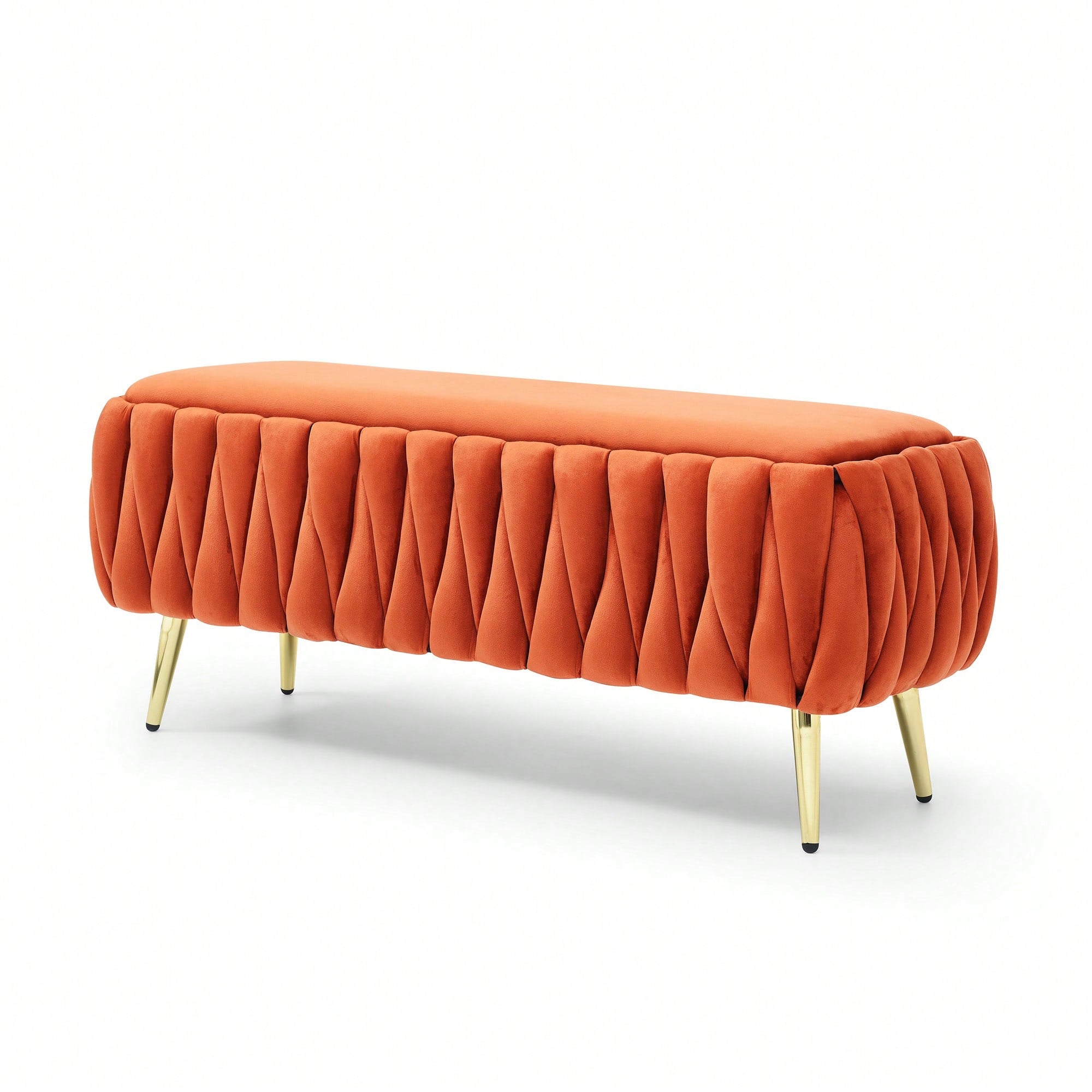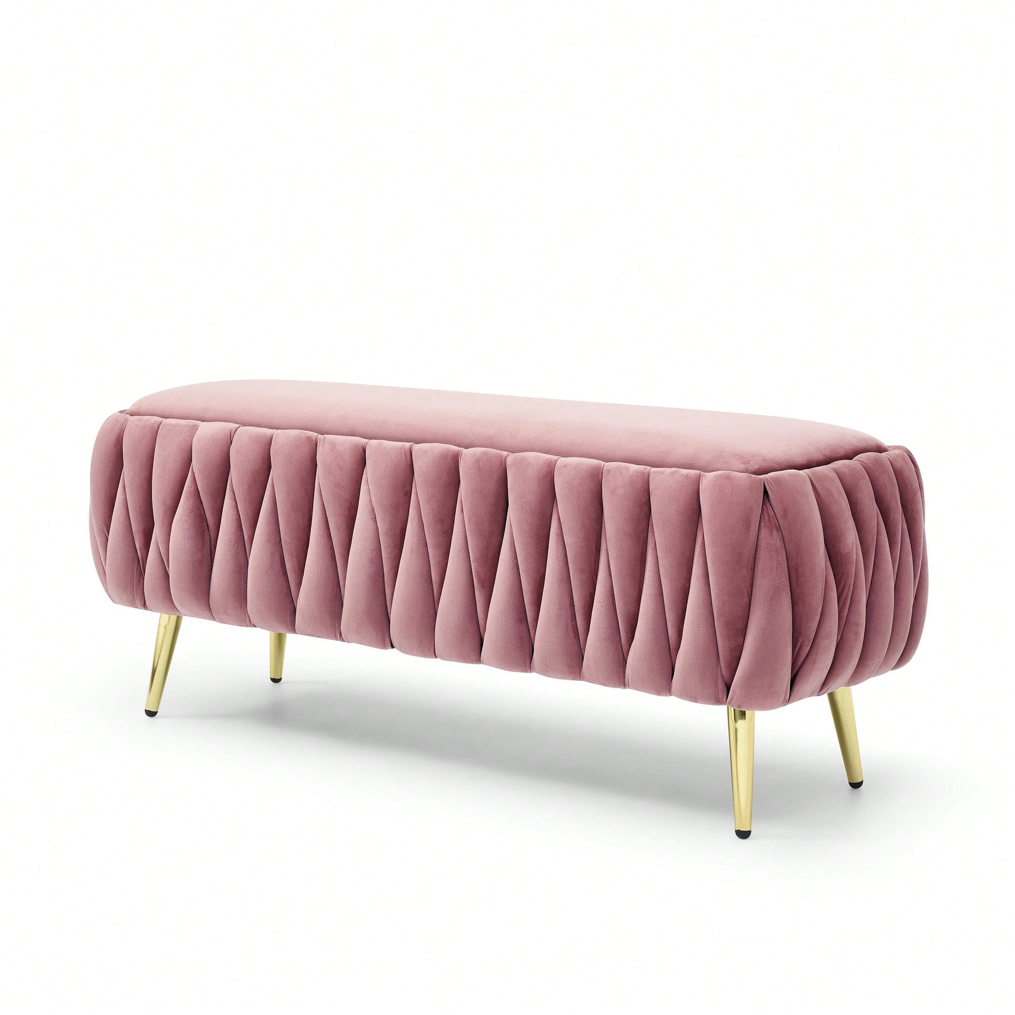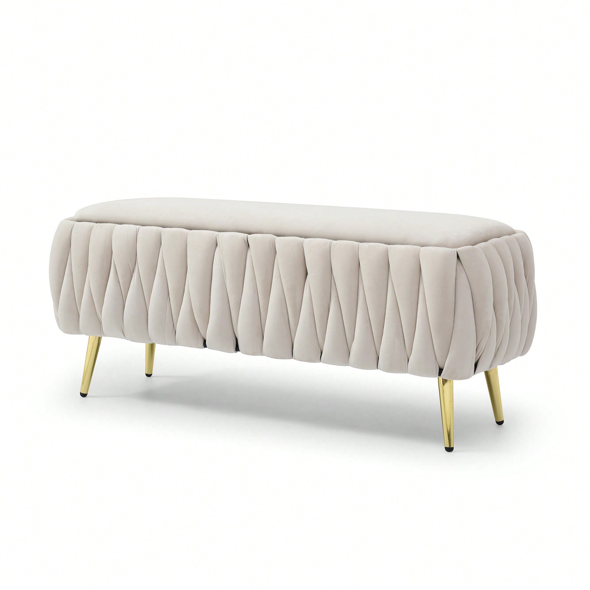 Velvet Oval Storage Bench With Gold Legs – Upholstered Ottoman For Bedroom, Living Room & Entryway – Sherpa Fabric Seating In 5 Colors