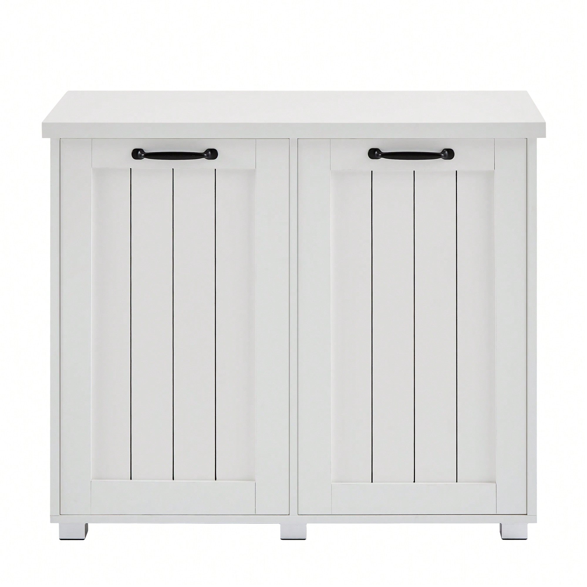 Dual-Compartment Tilt-Out Trash & Laundry Sorter Cabinet With Cutting Board - Pet-Proof Kitchen Storage, Freestanding White Design