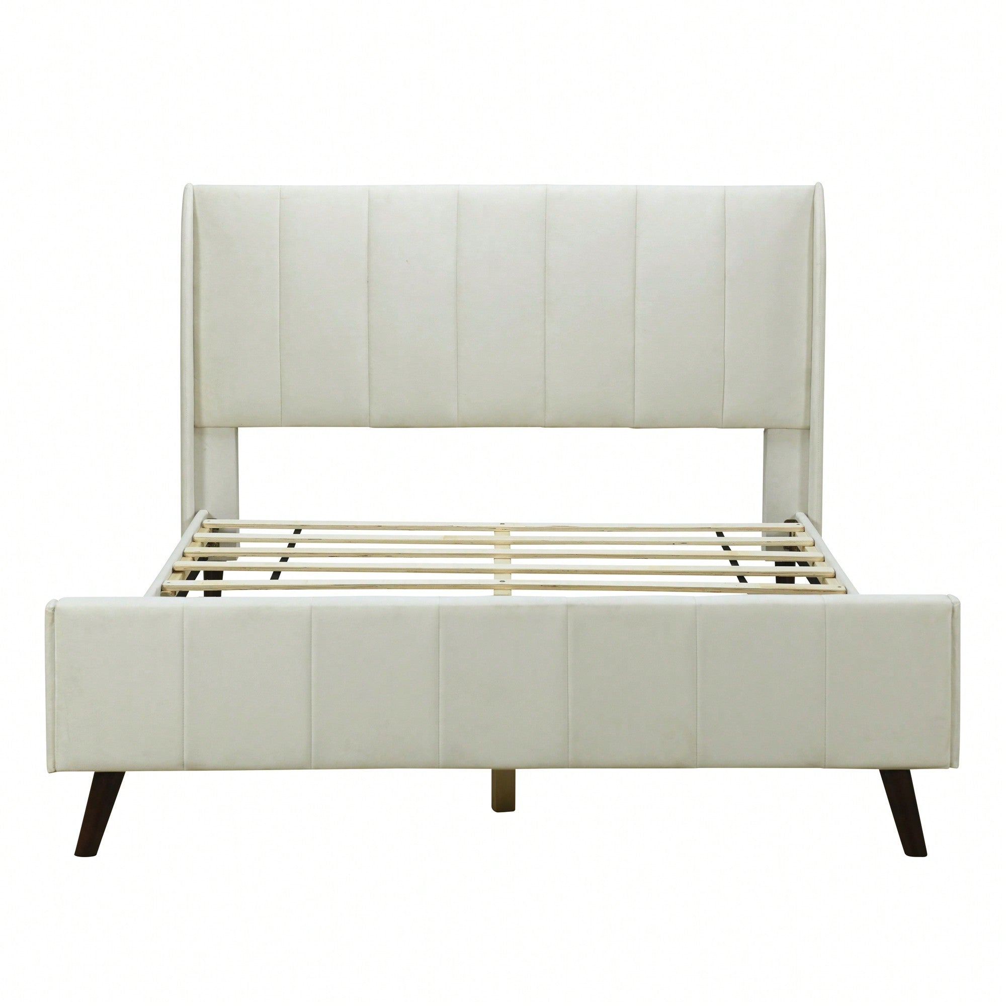 Stylish Full Size Upholstered Platform Bed With Sturdy Wood Legs In Beige Finish