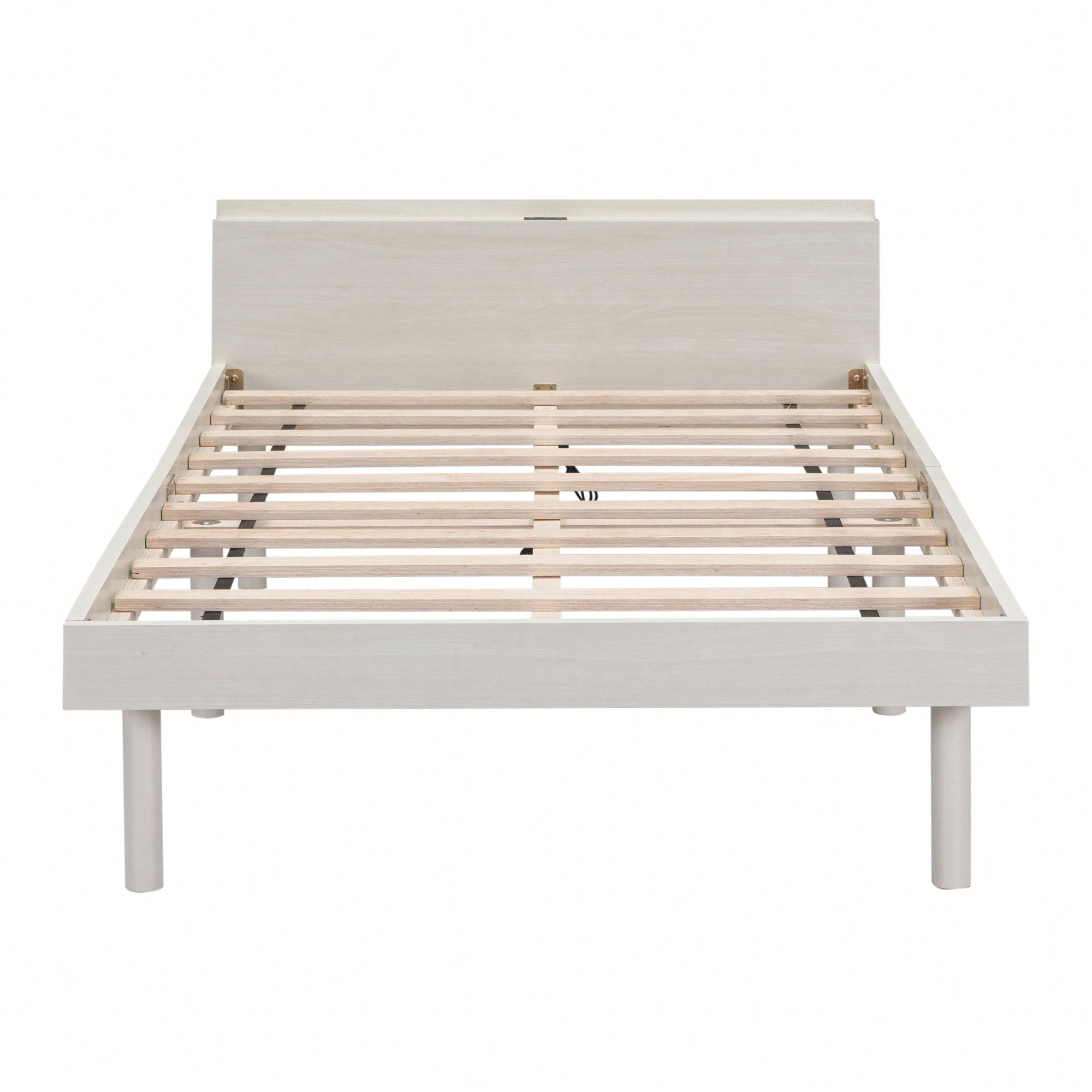 Modern Twin Size Platform Bed Frame With Built-In USB Ports – White Washed Finish