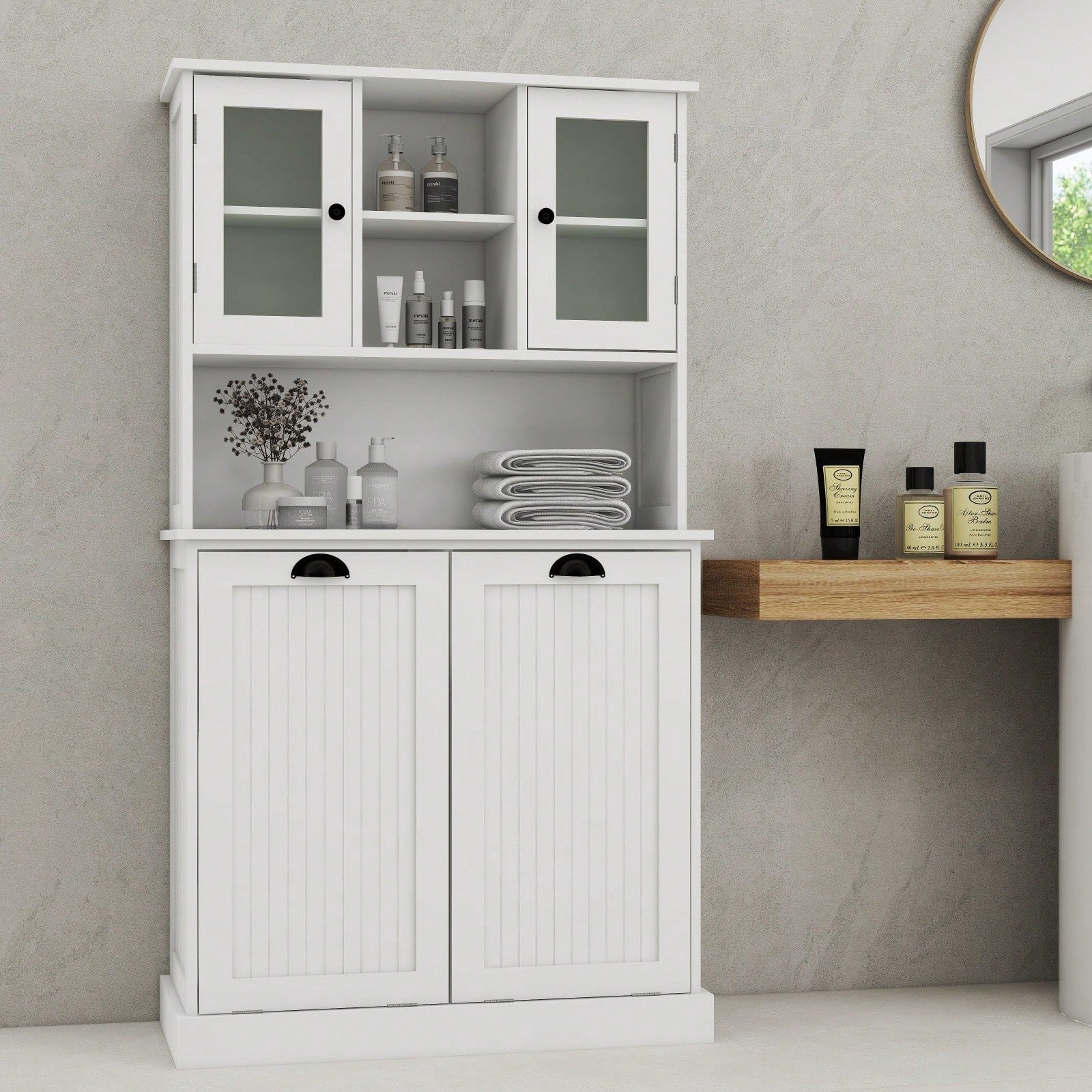 Tall Bathroom Cabinet With Tilt-Out Laundry Hamper, 2 Compartments, Adjustable Shelves, Space-Saving Storage For Towels, Toiletries - White