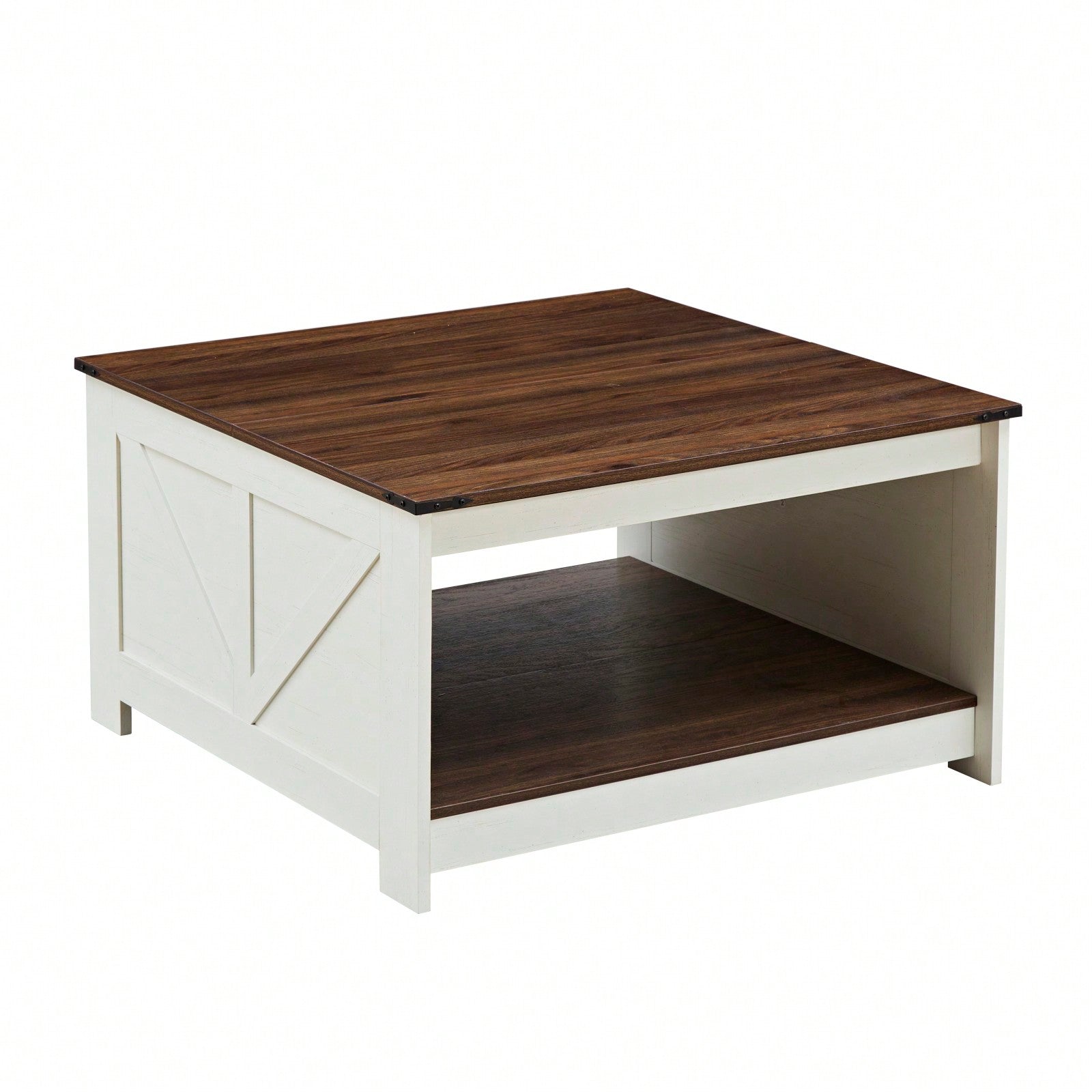 2-Tier Square Coffee Table With Storage, Rustic Wood Cocktail Table, Living Room Meeting Room Table