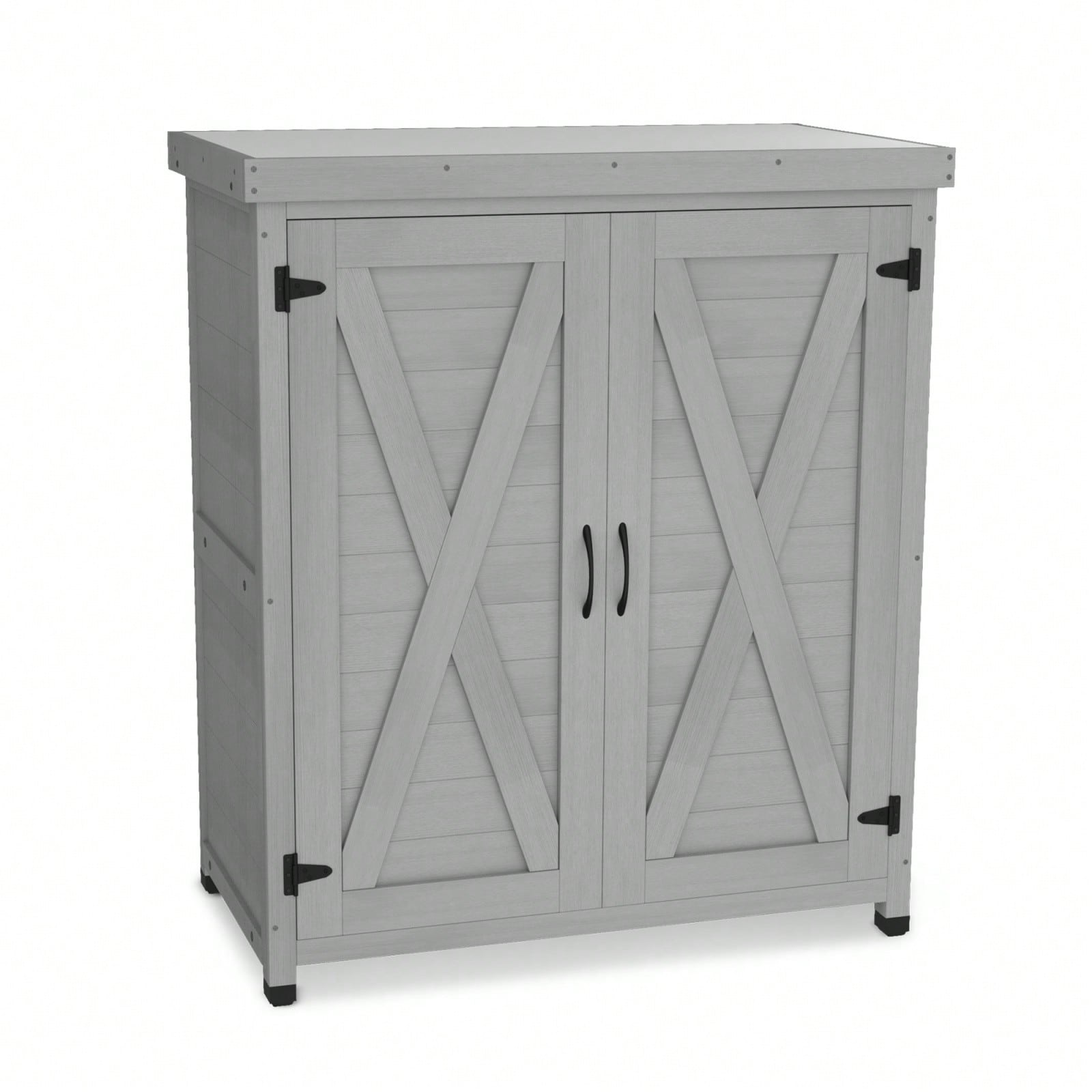 Heavy Duty Rustic Outdoor Workbench with Metal Top and Storage Cabinet for Patio Garden or Garage 31 Inch Weatherproof Design