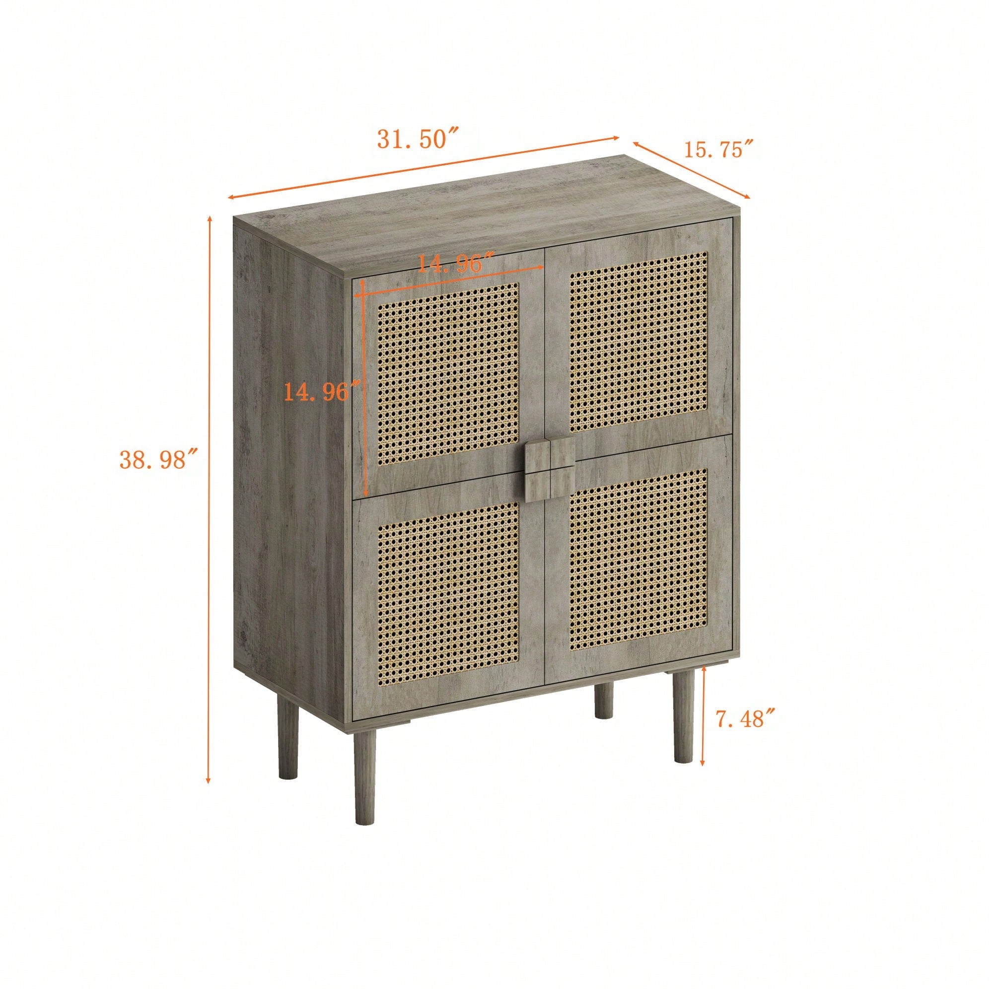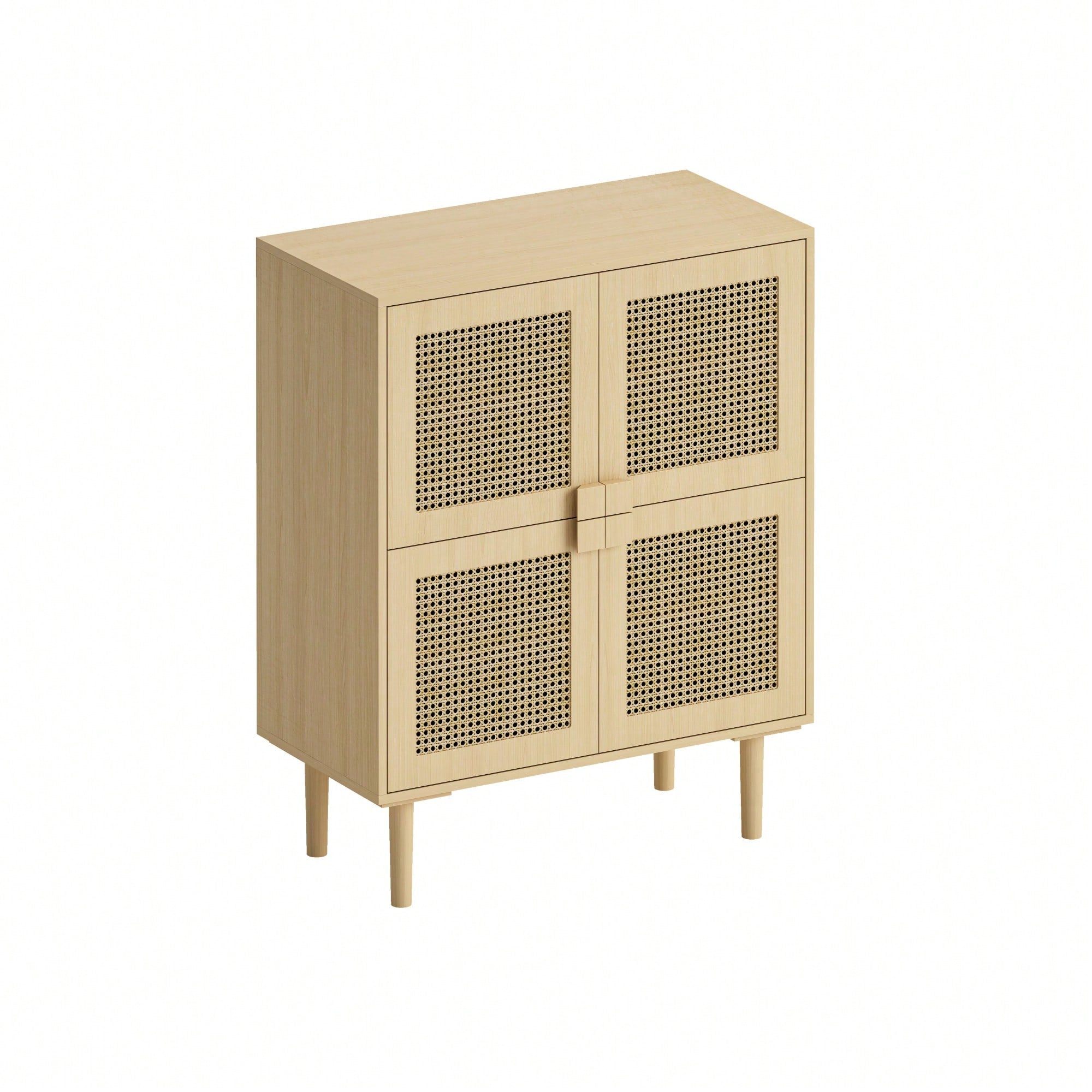 Rattan Mesh 4-Door Storage Cabinet Sideboard With 8 Shelves For Entryway Living Room And Hallway