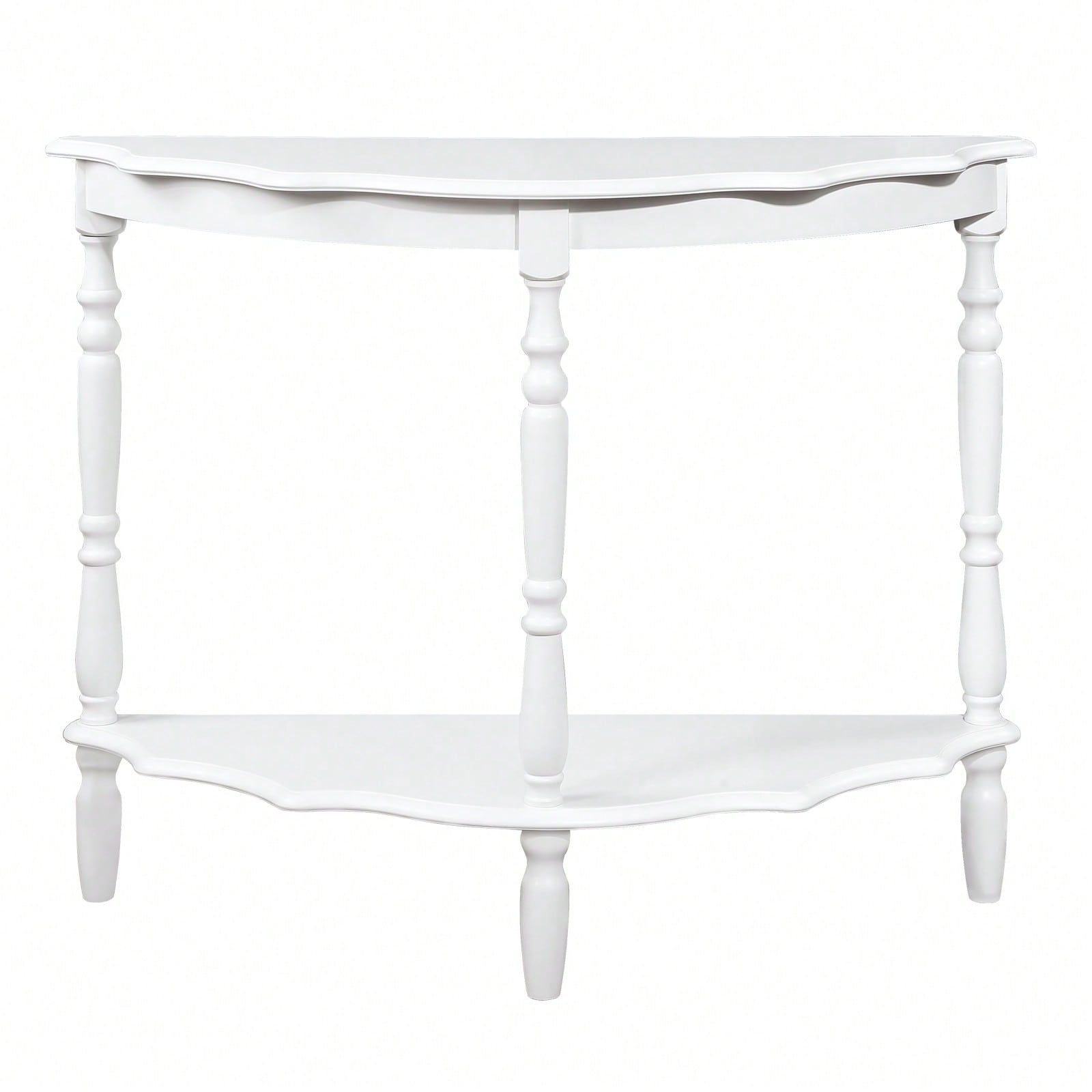 Retro Half-Moon Console Table with Cloud Design Top and Open Shelf Solid Wood Frame for Stylish Home Storage