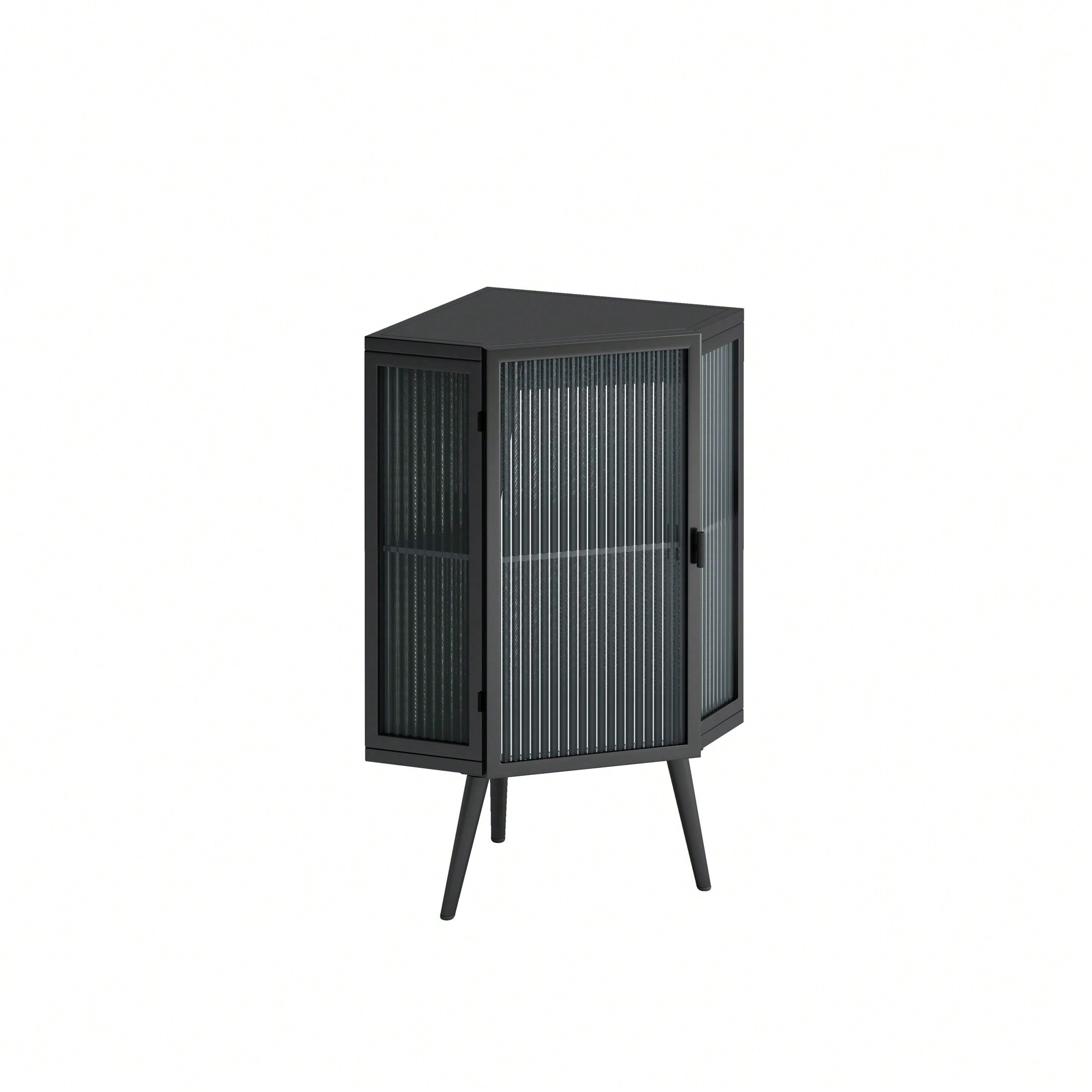 22.25" Floor Coner Cabinet With Tempered Glass Door & Storage Shelves For Bathroom, Living Room, Bedroom