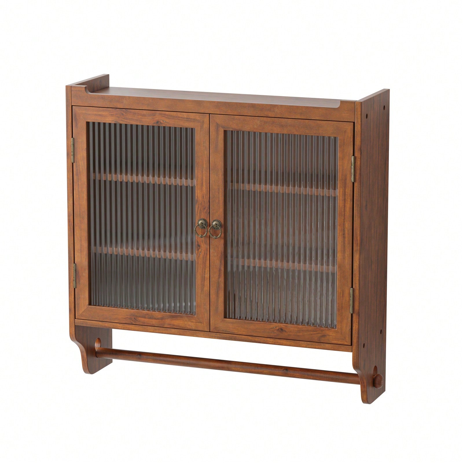 Rustic 24 Inch Farmhouse Wall Storage Cabinet with Glass Doors 3-Tier Organizer and Towel Bar for Kitchen or Bathroom