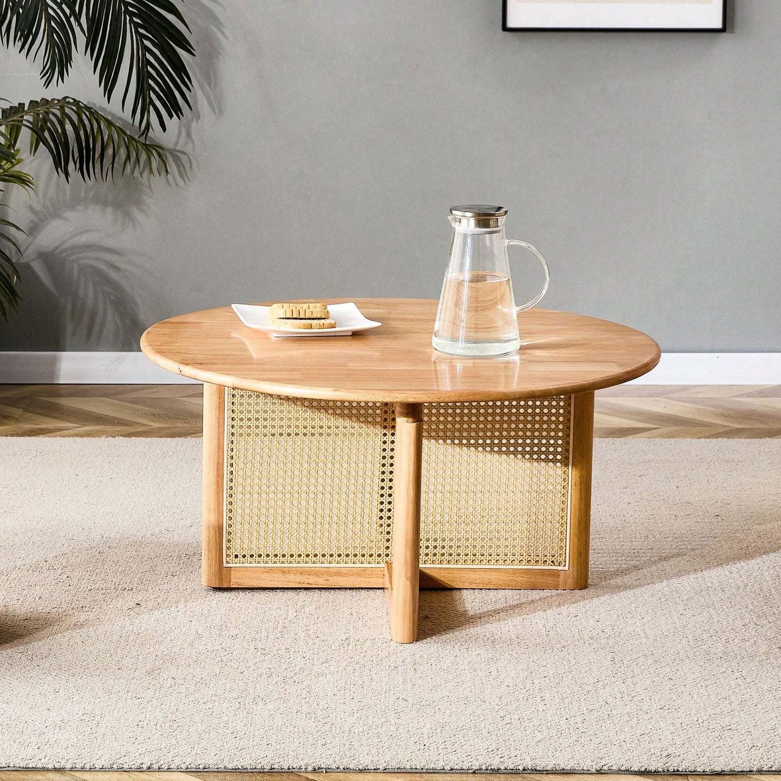 Elegant Wooden Coffee Table With Faux Rattan Accents - Perfect For Stylish Living Rooms And Cozy Tea Time