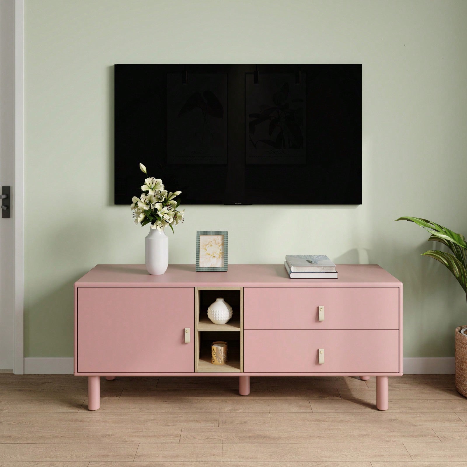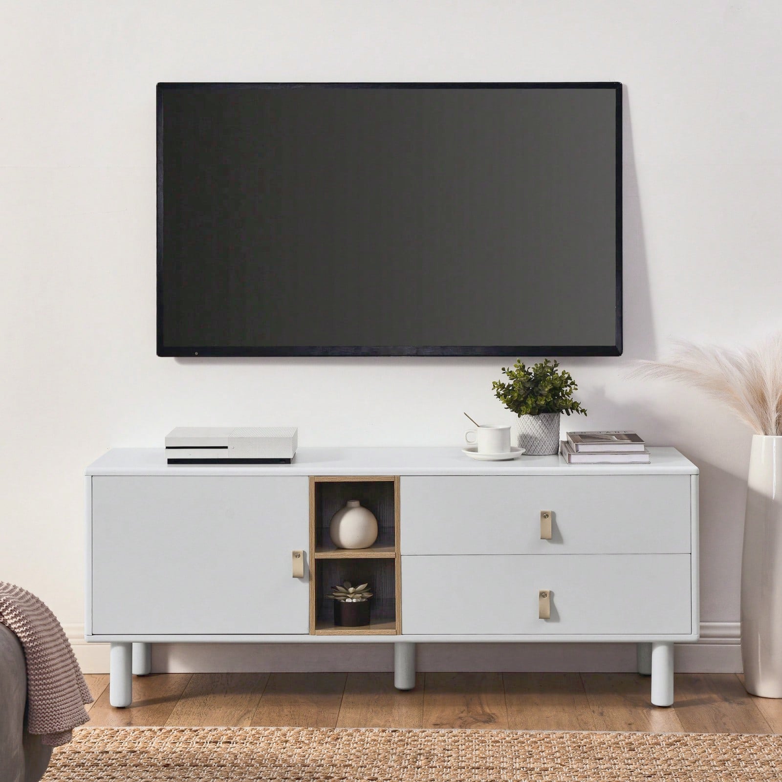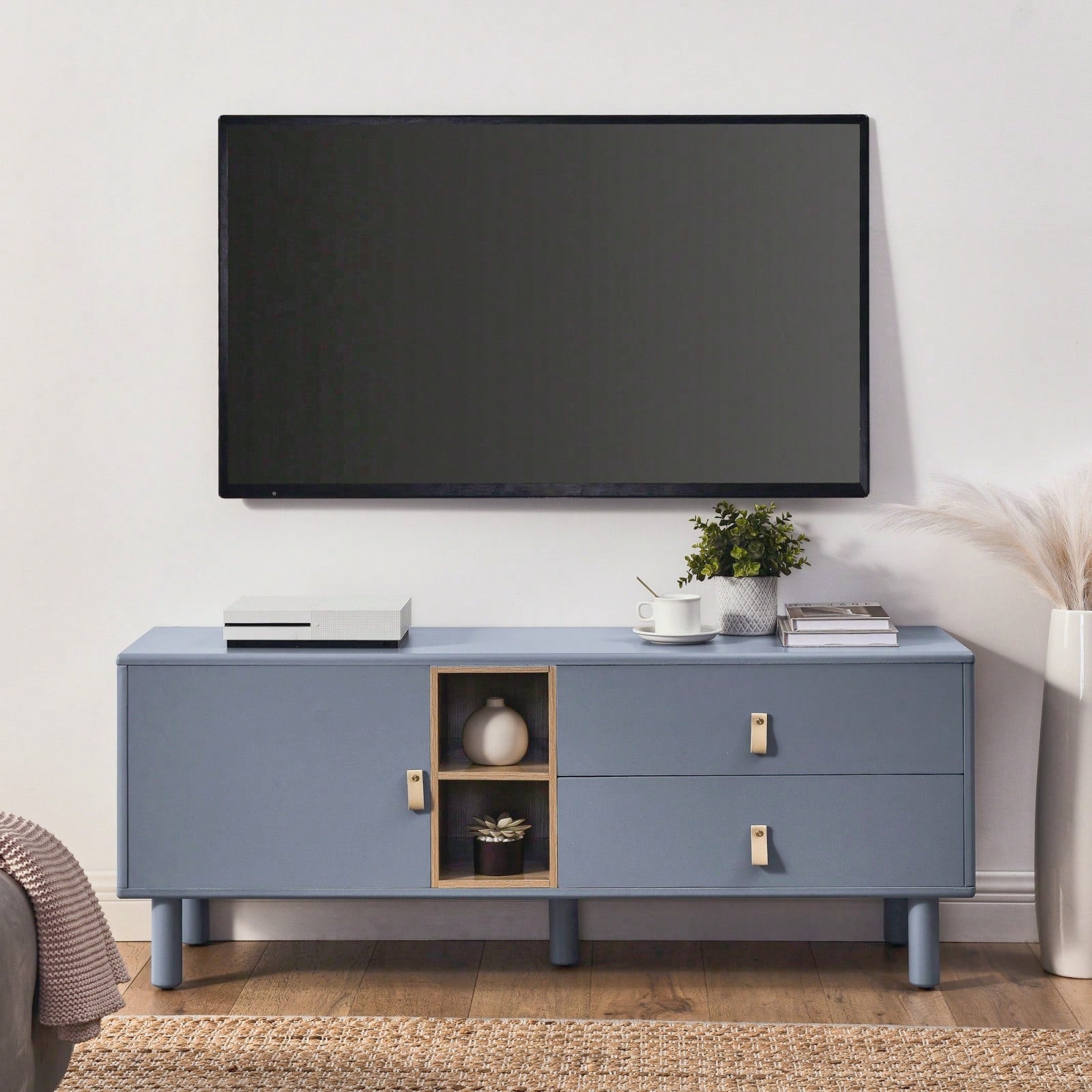Modern Wooden TV Cabinet with Leather Handle Drawers Multi-Functional Storage Solution for Home