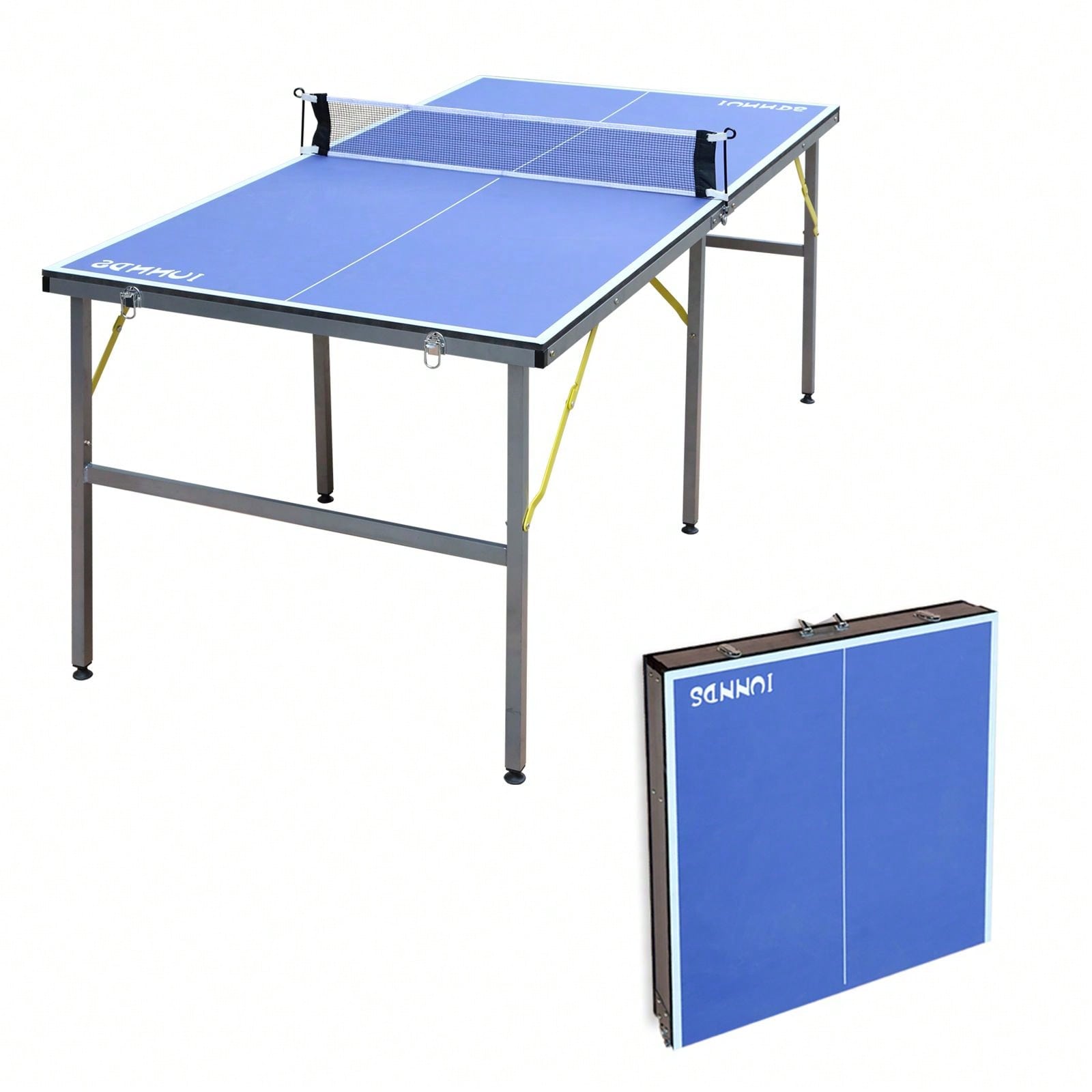Mid-Size Table Tennis Table, Foldable & Portable Ping Pong Table Set For Indoor & Outdoor Games With Net, 2 Table Tennis Paddles And 3 Balls