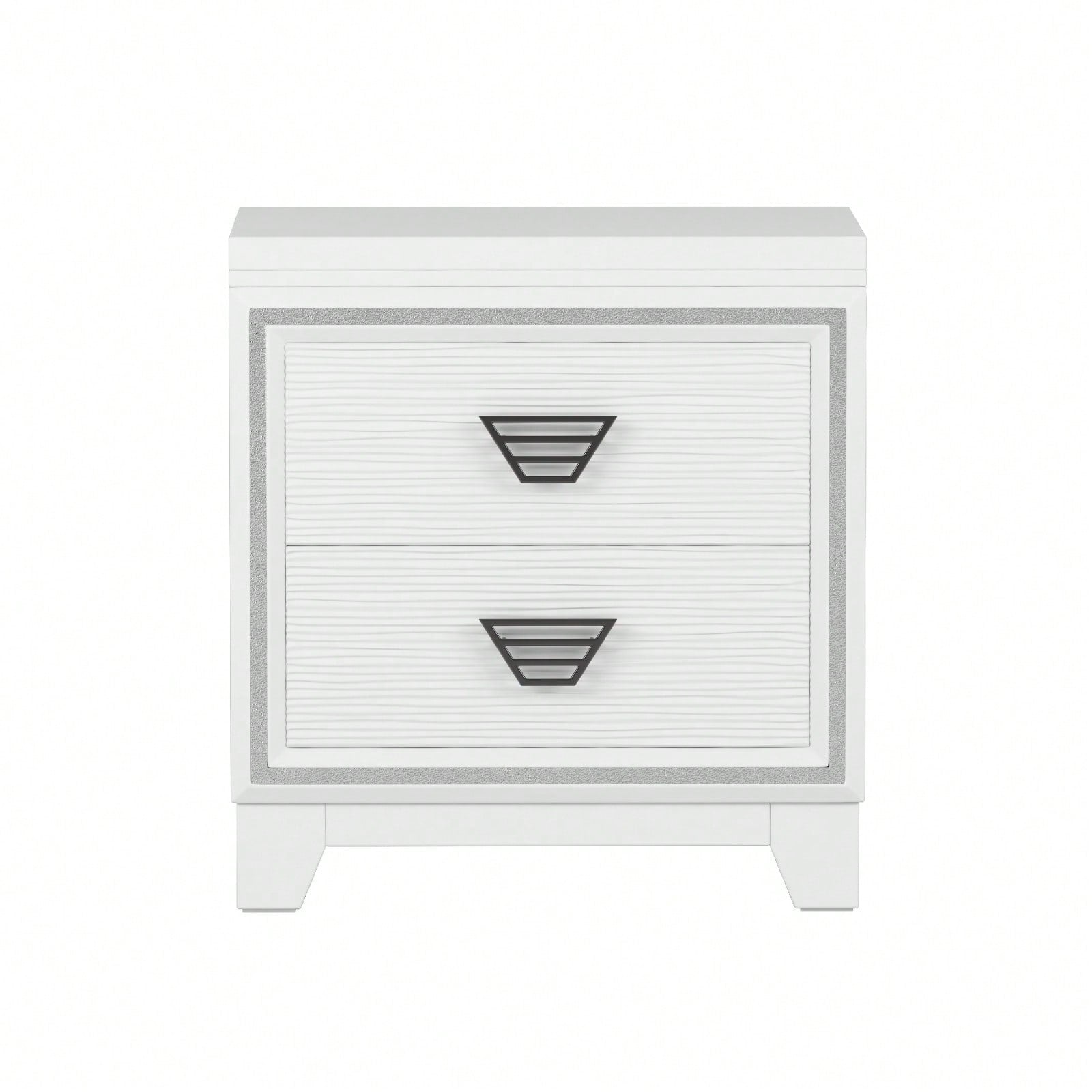 Elegant Nightstand With Metal Handles And Sparkling Decoration – 2 Drawers For Bedroom And Living Room