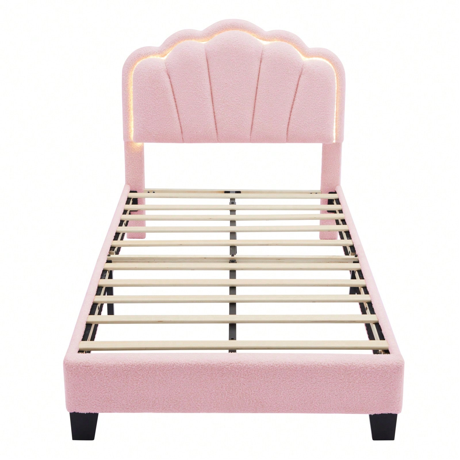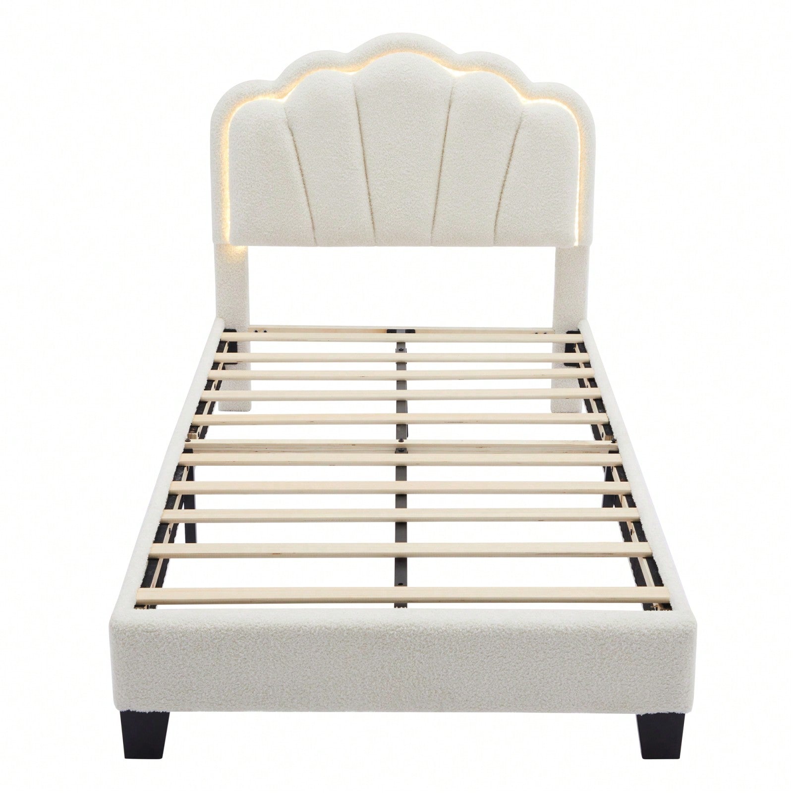 Twin Size Upholstered Flower-Shape Bed Elegant Flower Headboard With LED Light Strip