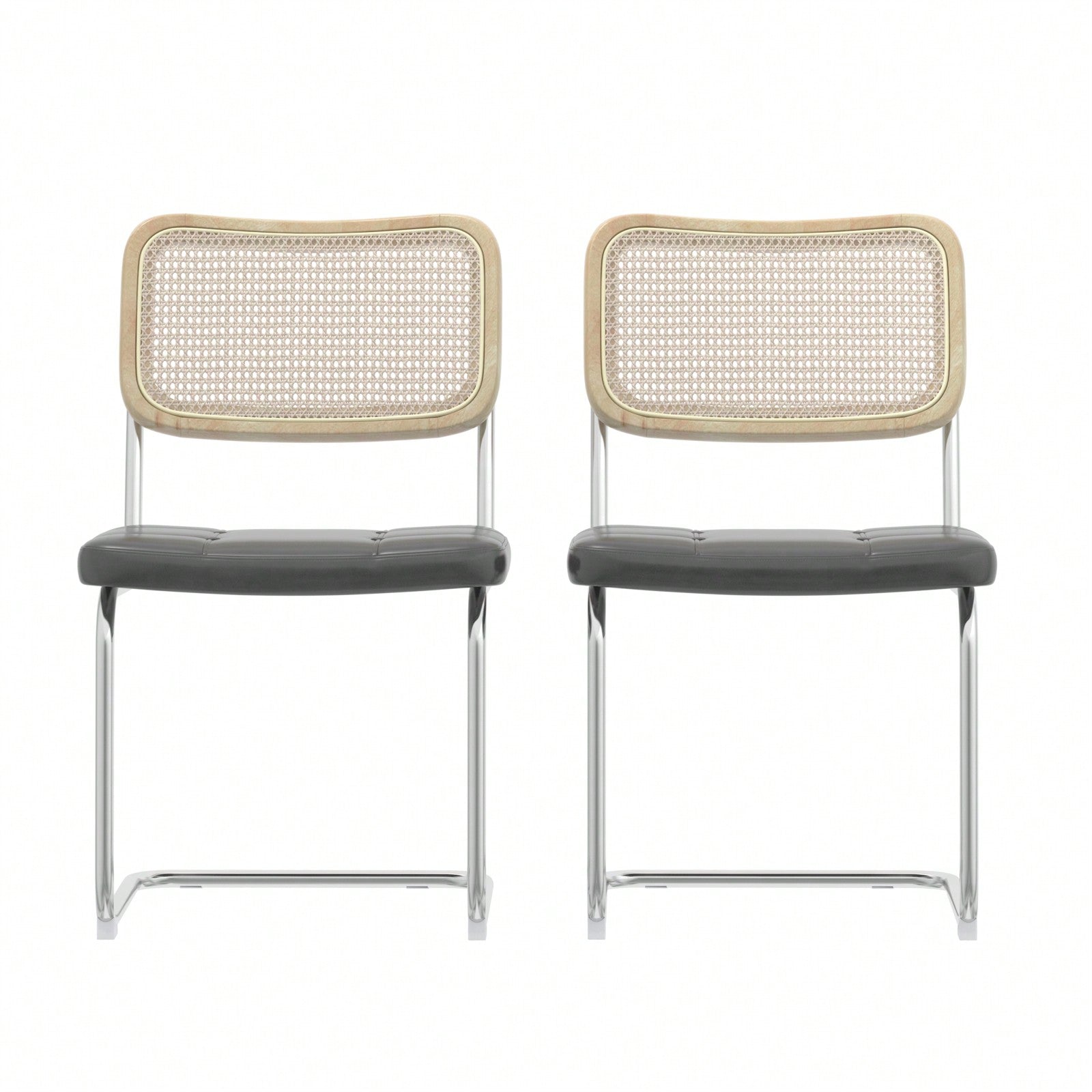 Set of 2 Rattan Dining Chairs with High-Density Sponge PU Leather Electroplated Legs for Living Room and Bedroom