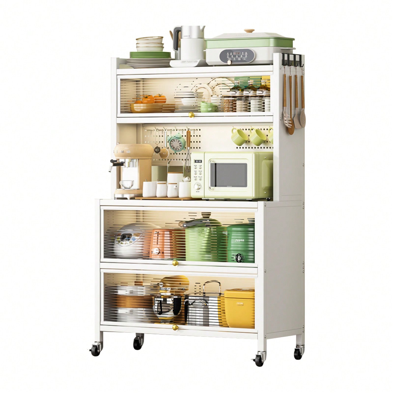 Heavy Duty Metal Kitchen Bakers Rack with Lockable Cabinet Doors and Rolling Utility Cart 250KG Capacity