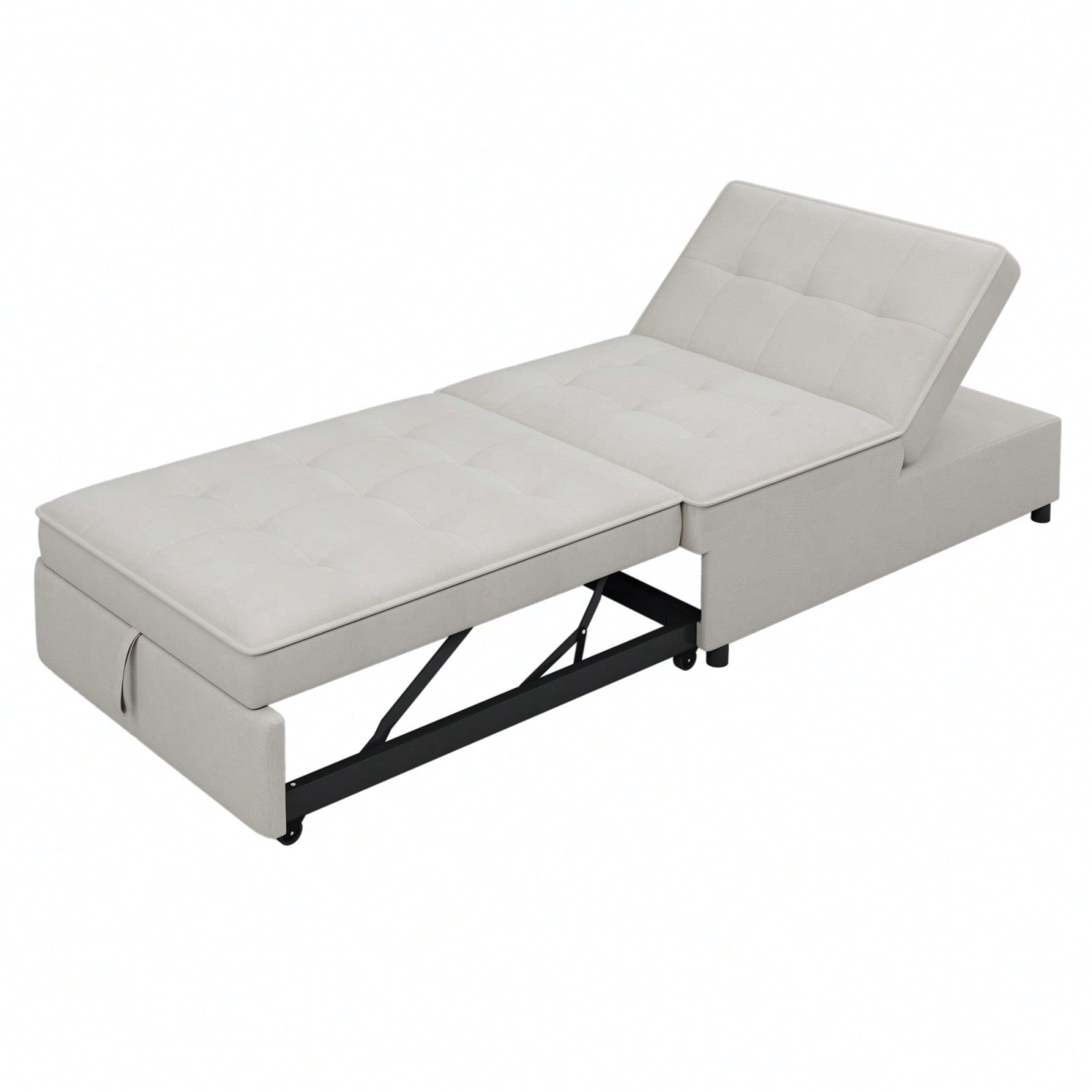 4-in-1 Linen Sofa Bed Chair with USB Port and Storage Adjustable Backrest for Small Spaces