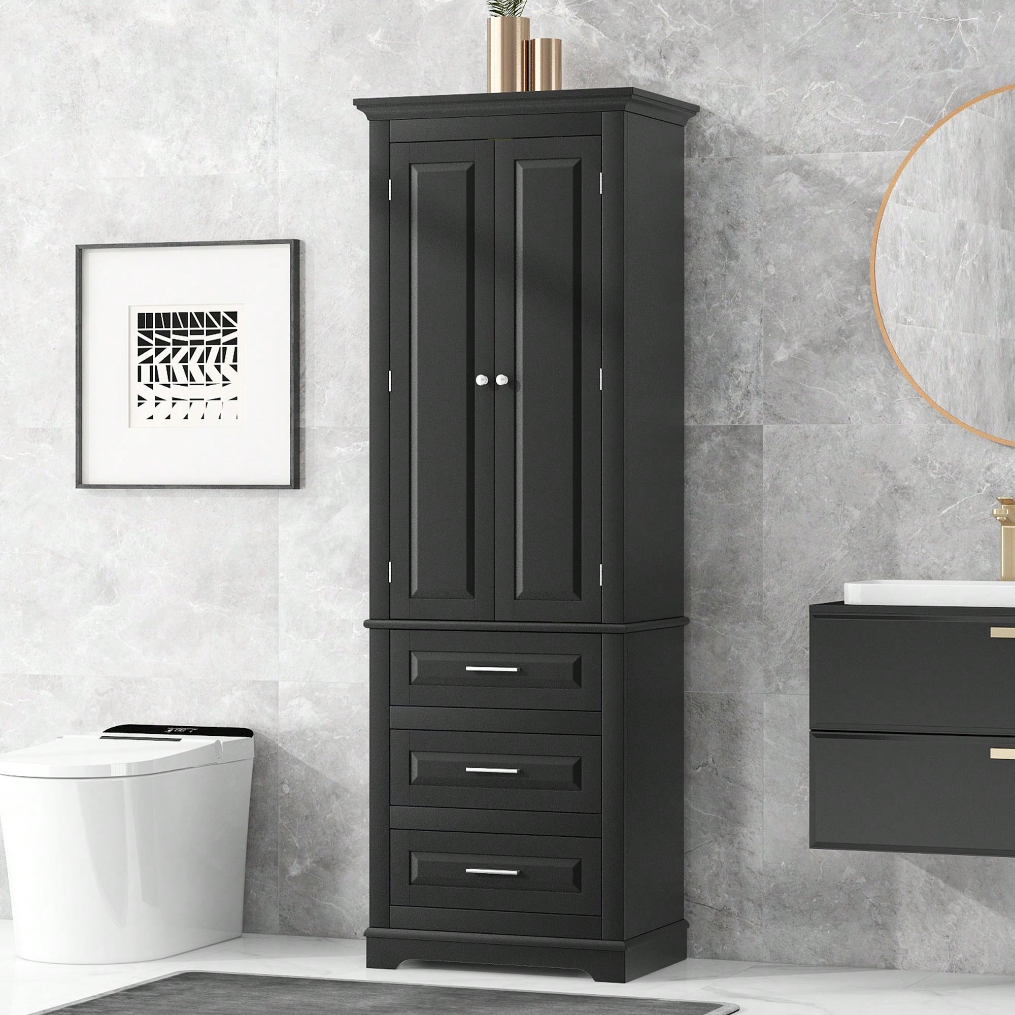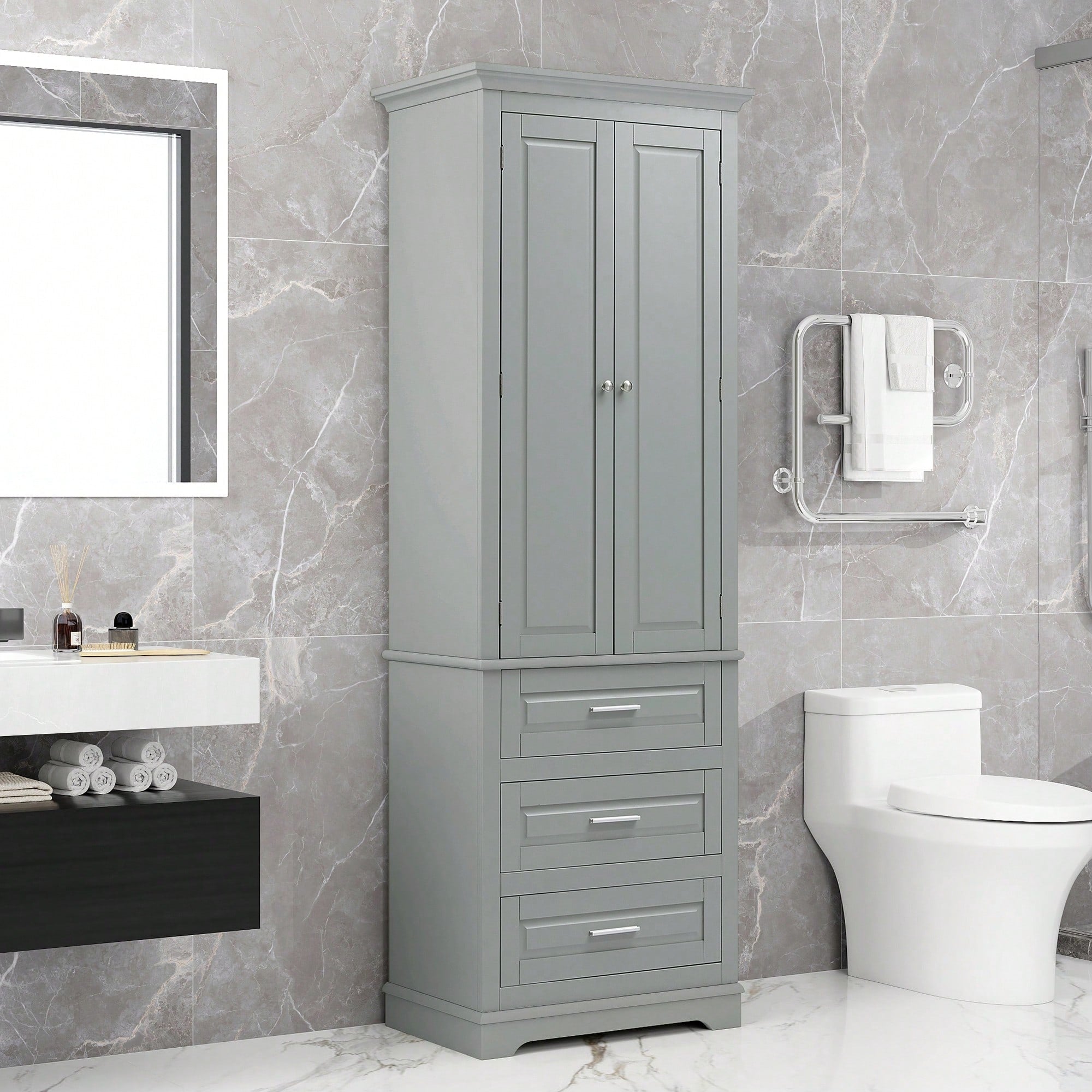 Tall Storage Cabinet With Three Drawers For Bathroom/Office, MDF, Adjustable Shelf, Anti-Dumping Device