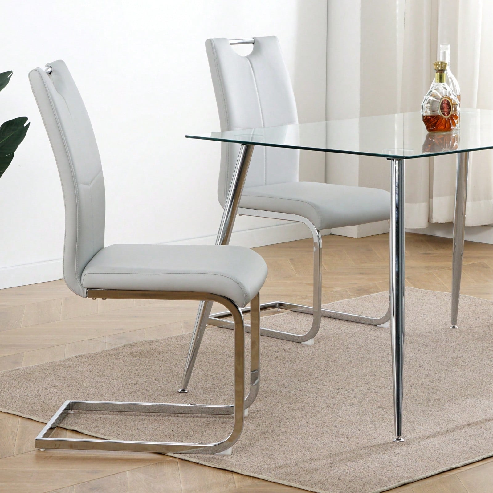 Set Of 2, Modern Dining Chairs With Faux Leather Padded Seat Upholstered Chairs With Chrome Metal Legs For Kitchen, Living Room, Bedroom