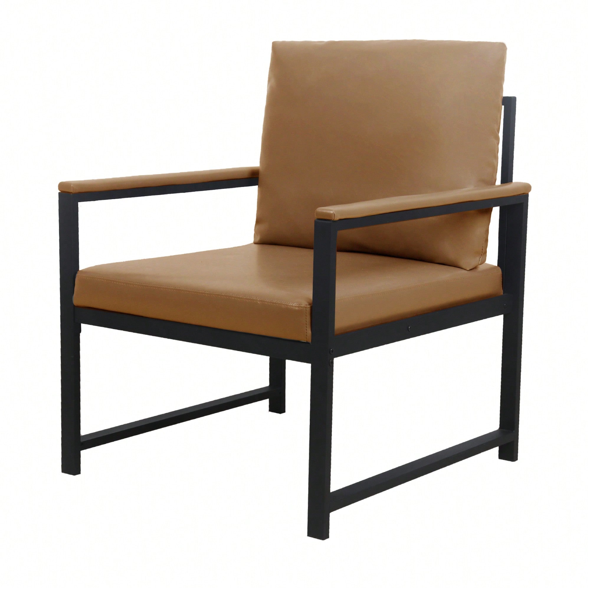Luxurious Light Tan Accent Arm Chair for Living Room Office Lounge with Thick Cushions and Sturdy Metal Frame