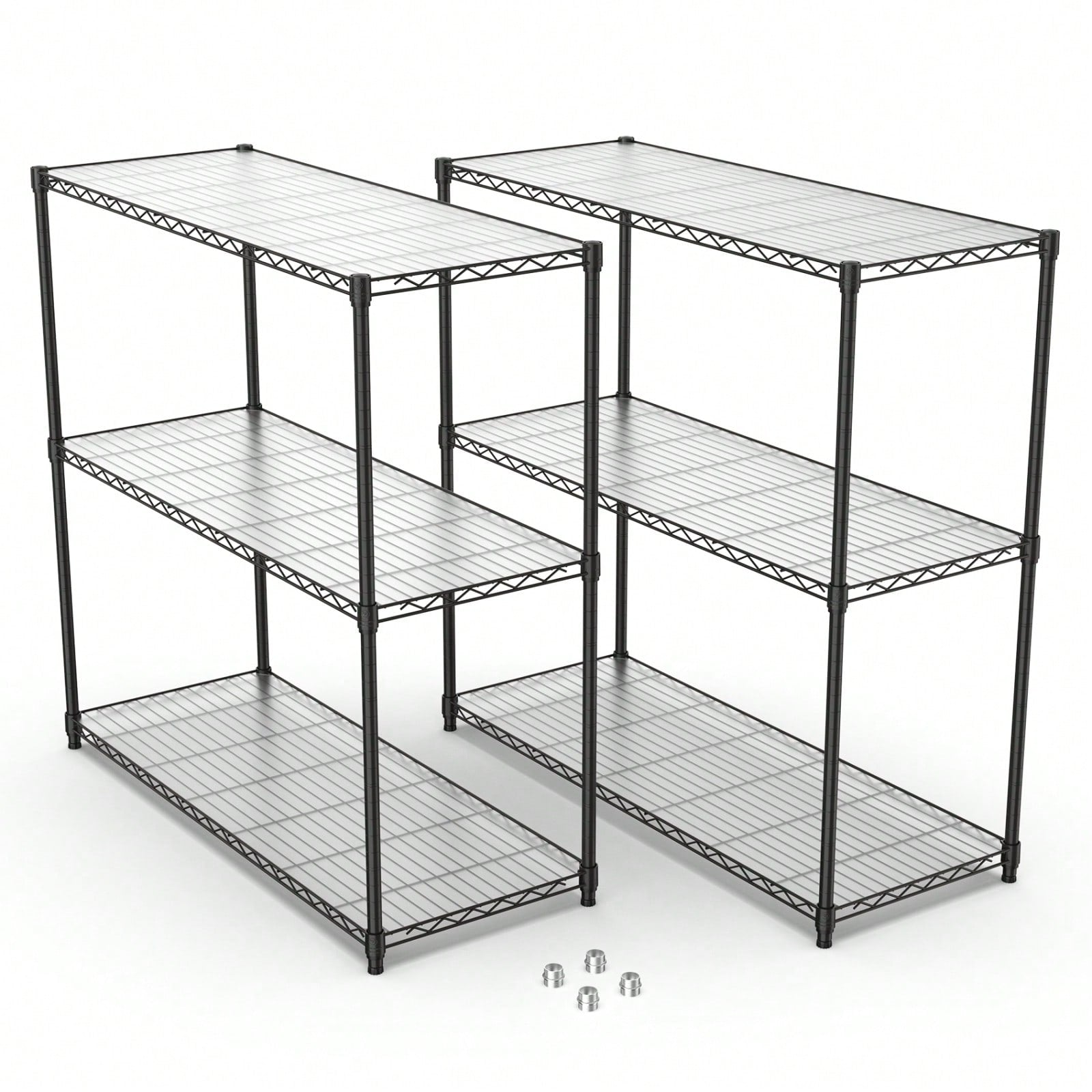 2 Pack Heavy Duty Wire Shelving Unit, 3 Tier Adjustable Storage Rack With Liners, 1050 Lbs Capacity, 48"H X 48"L X 18"D, Easy AssemblyRegular price $216.99 USDSale price $216.99 USD Regular priceUnit price per$316.99 USDSale Sold out1.Adjustable design for versatile storage options2.Each shelf can hold up to 350lbs, with a total capacity of 1050lbs3.Made of heavy steel for durability and rust resistance4.Easy...