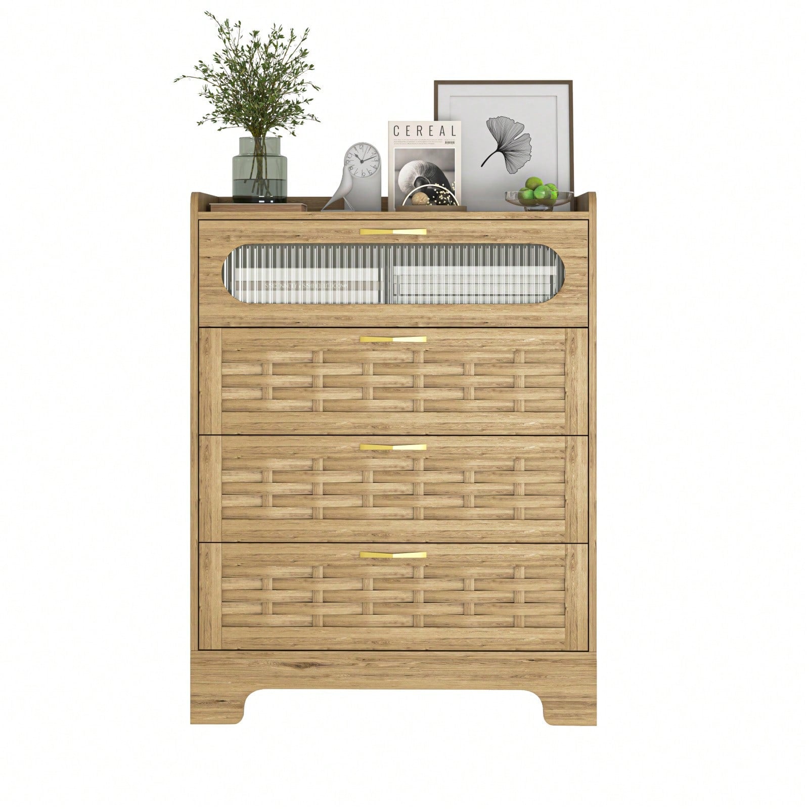 Modern 4 Drawer Wood Dresser for Bedroom and Nursery - Spacious Storage Organizer for Living Room and Kids RoomRegular price $249.99 USDSale price $249.99 USD Regular priceUnit price per$373.99 USDSale Sold out1.Modern and stylish design with elegant woven wood cabinet top2.Scratch-resistant and moisture-resistant MDF boards for durability3.Sturdy metal handles for easy opening and closing of drawers4.Ample storage...