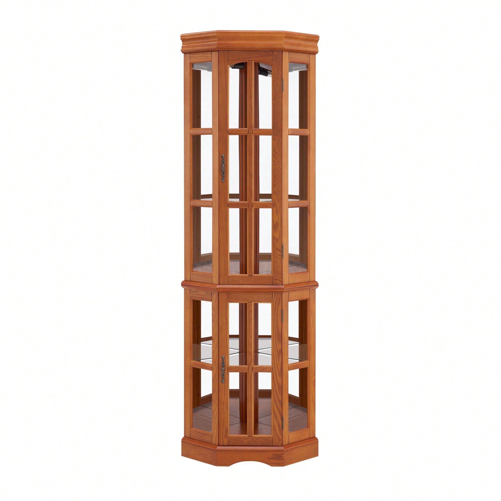 Elegant Corner Curio Cabinet With Adjustable Glass Shelves And Integrated Lighting System