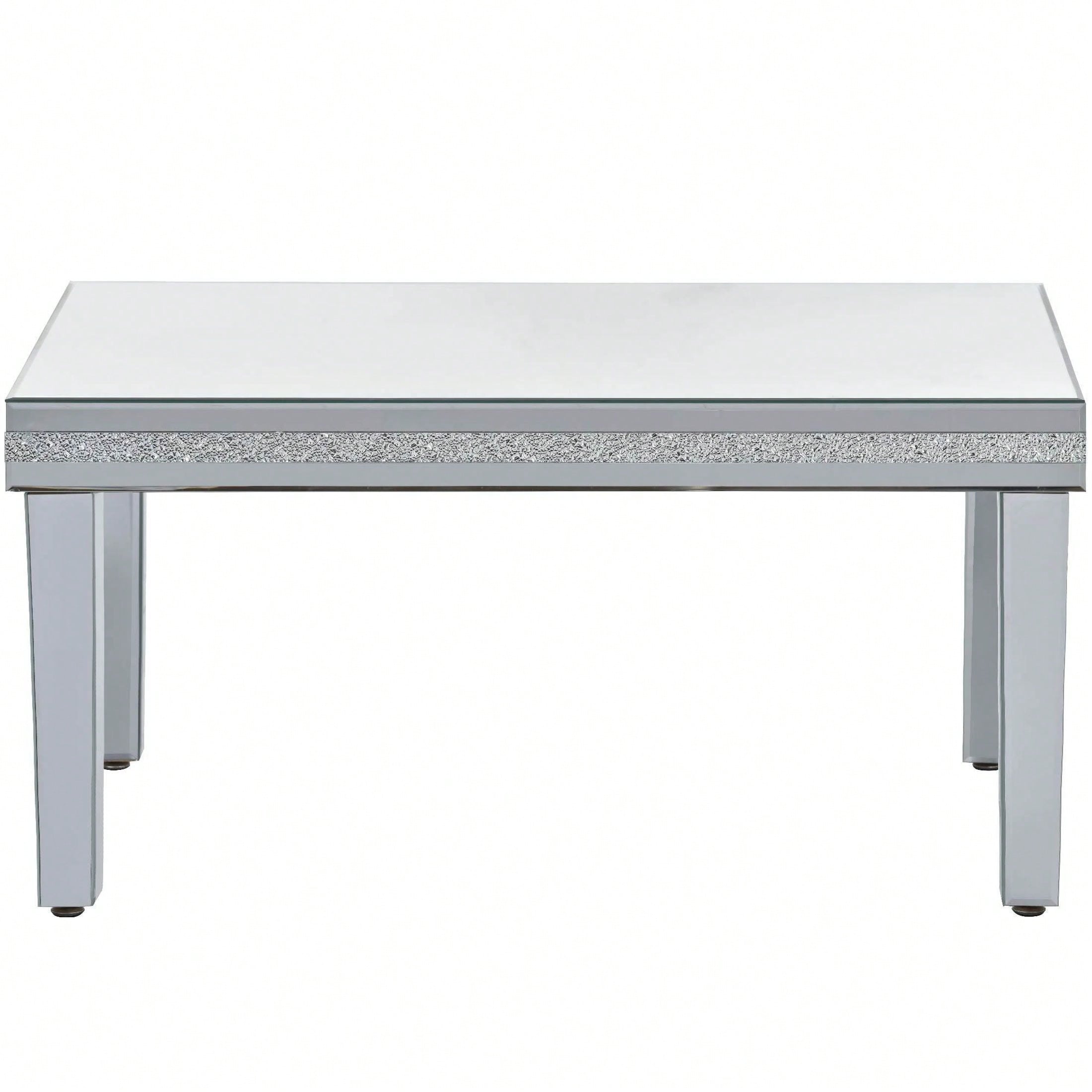 Modern Glass Mirrored Coffee Table, Easy Assembly Cocktail Table With Crystal Design And Adjustable Height Legs