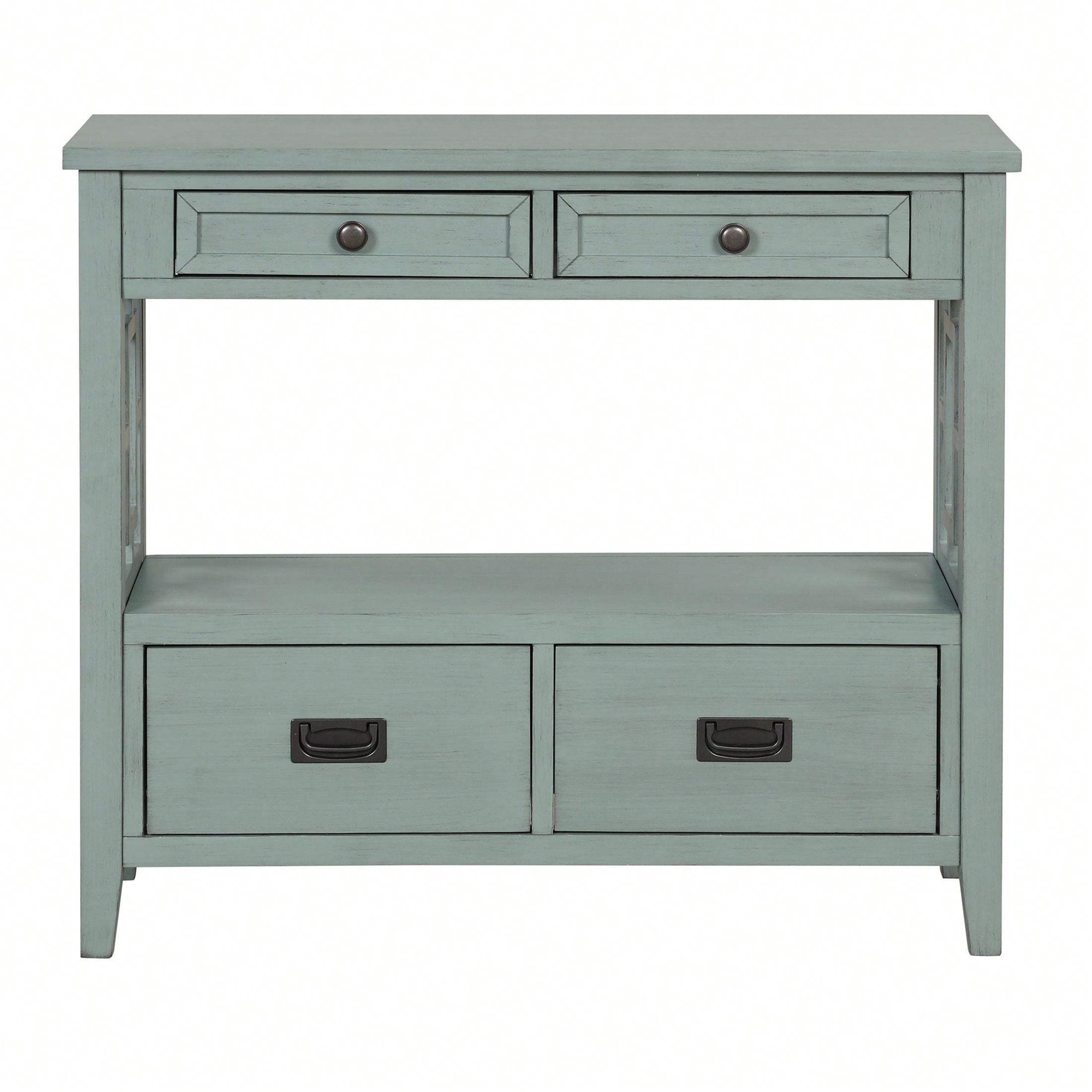 36'' Farmhouse Pine Wood Console Table Entry Sofa Table With 4 Drawers & 1 Storage Shelf For Entryway Living Room Bedroom Hallway Kitchen