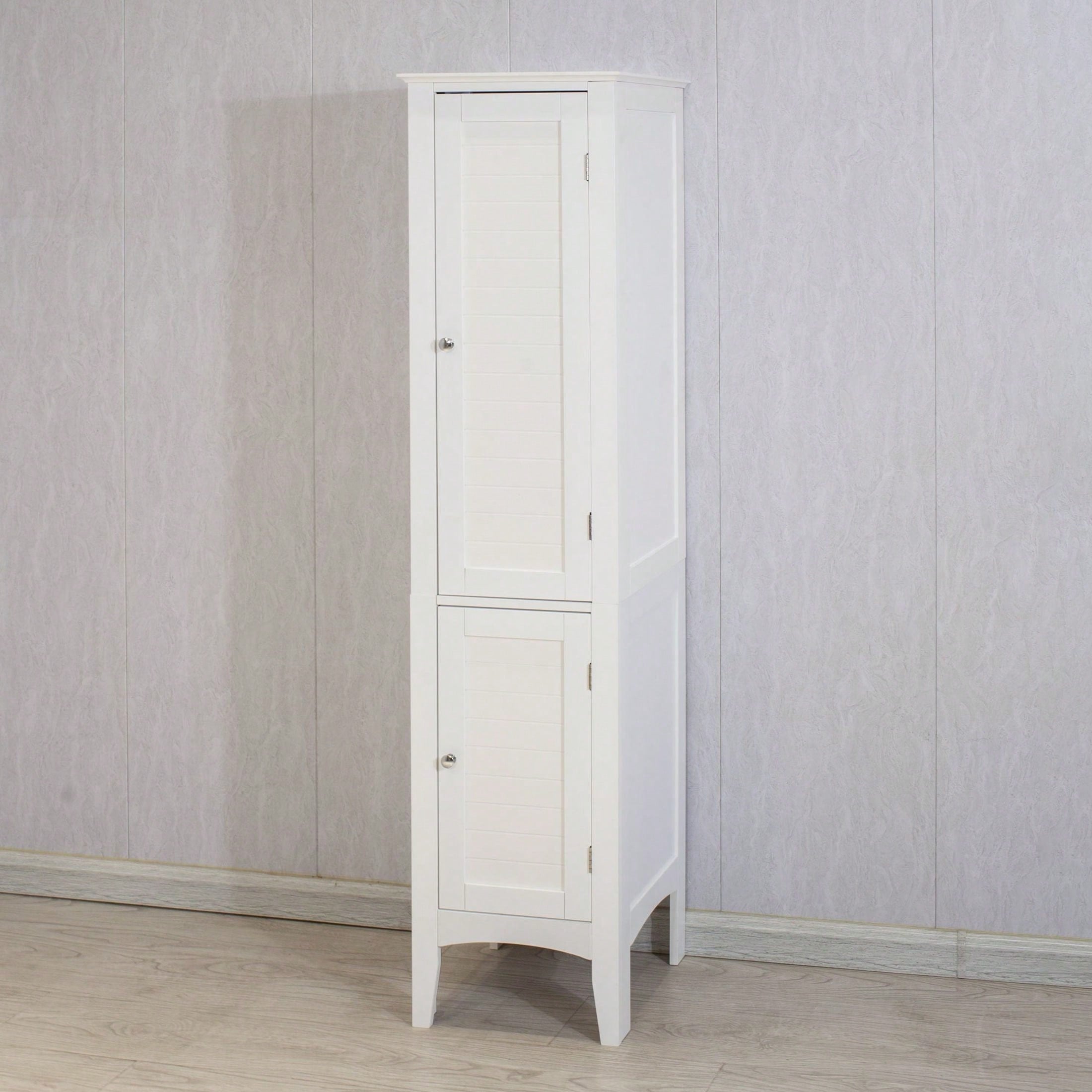 Tall Narrow Tower Freestanding Cabinet With 2 Shutter Doors 5 Tier Shelves For Bathroom, Kitchen ,Living Room ,Storage Cabinet