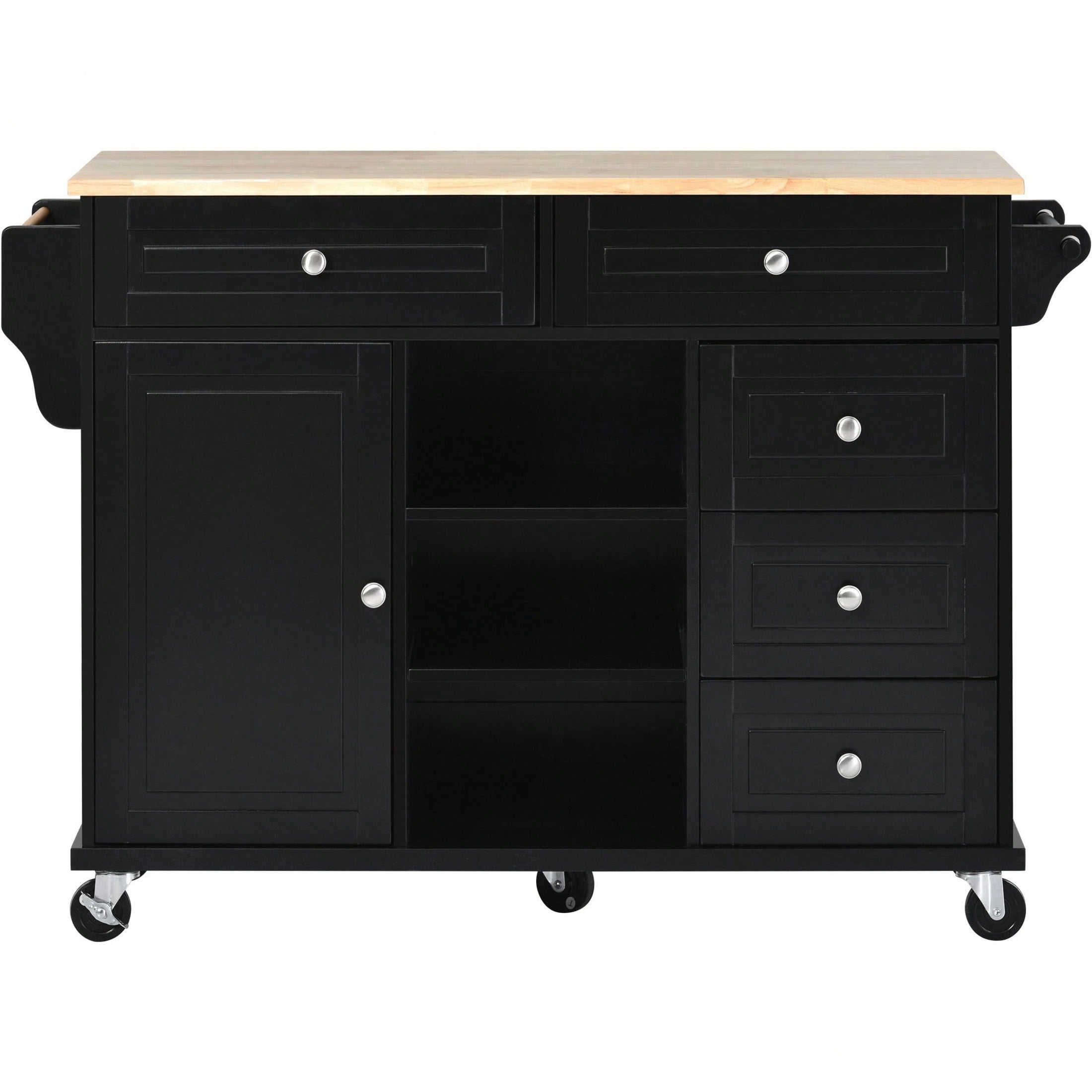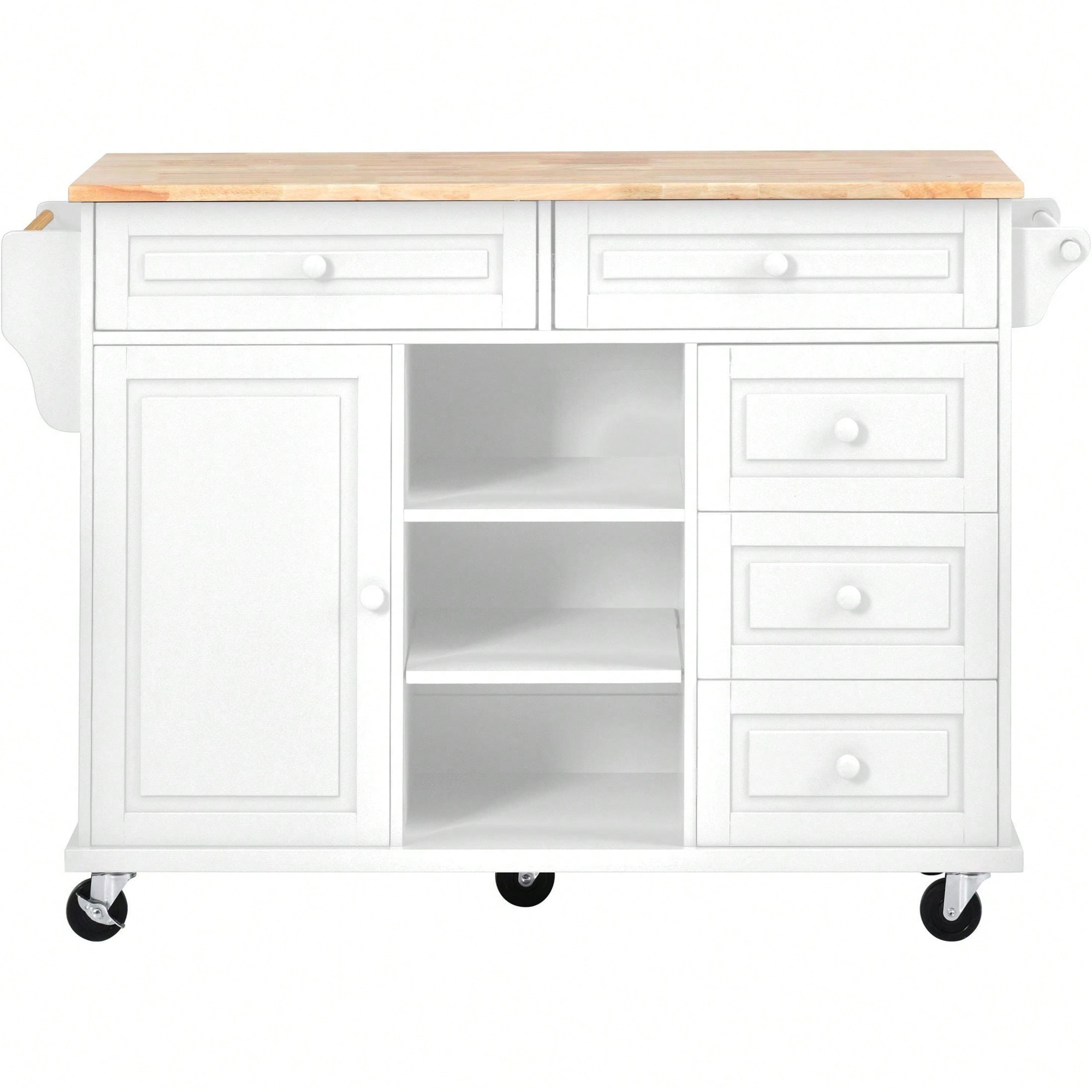Kitchen Cart With Rubber Wood Desktop Rolling Mobile Kitchen Island With Storage And 5 Draws 53" Length
