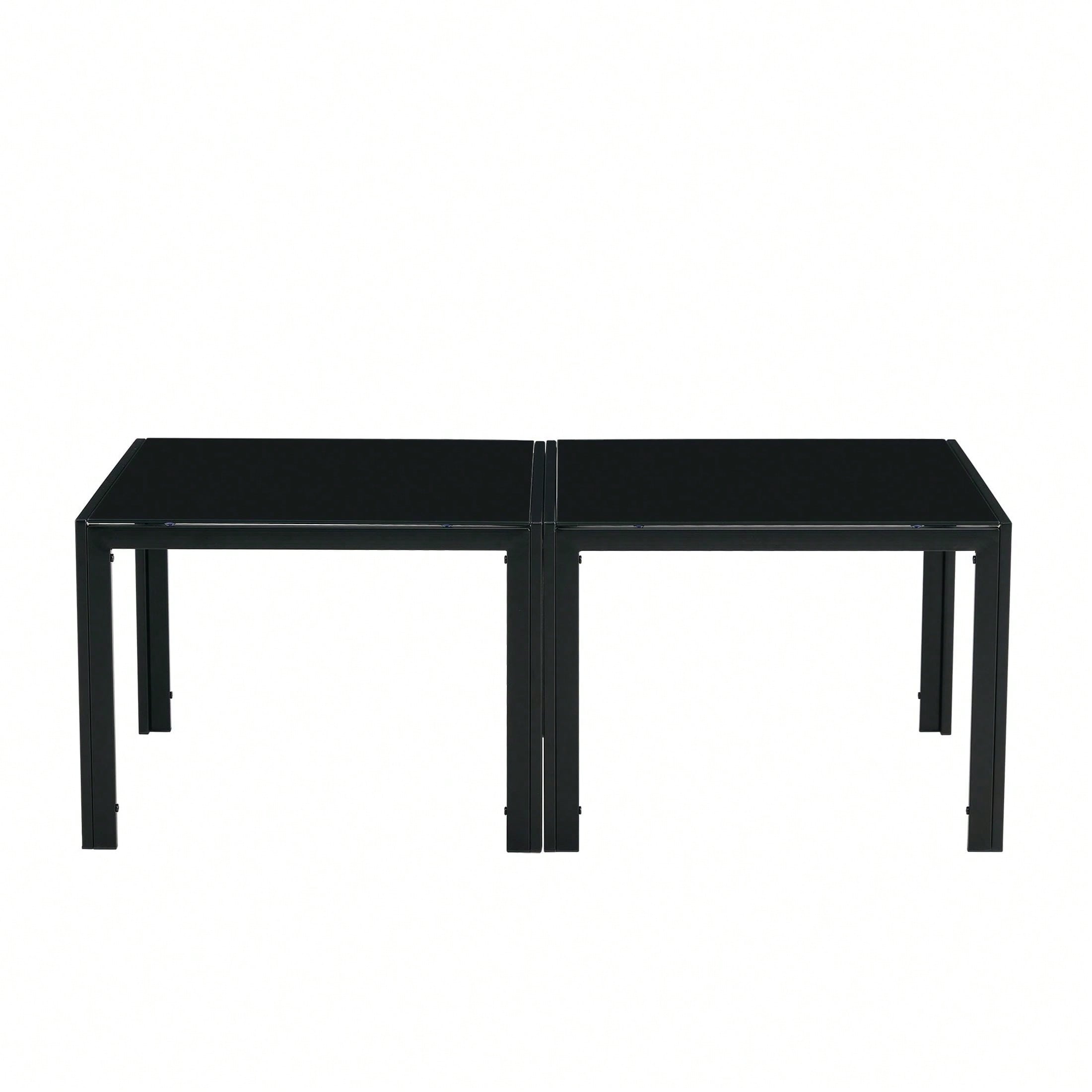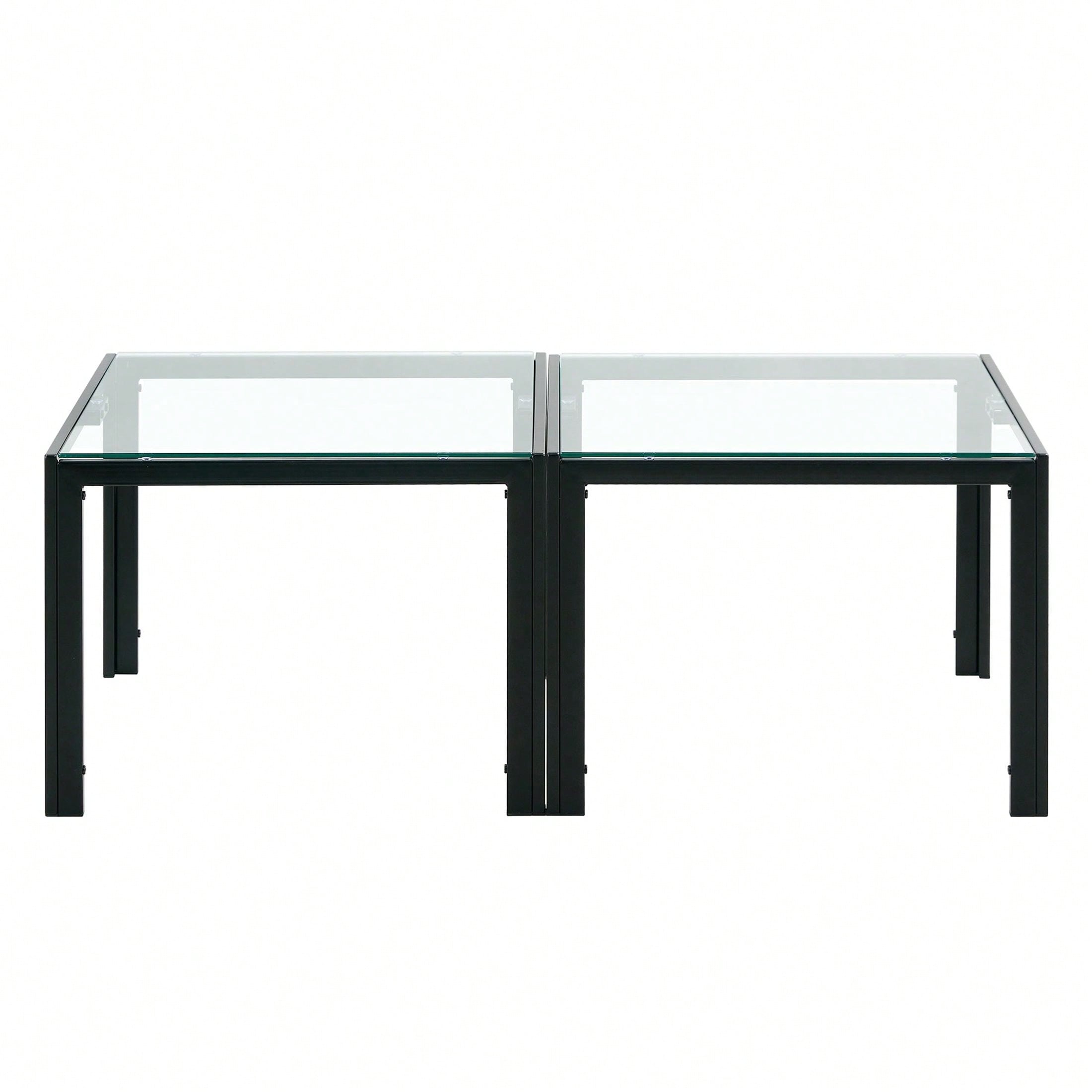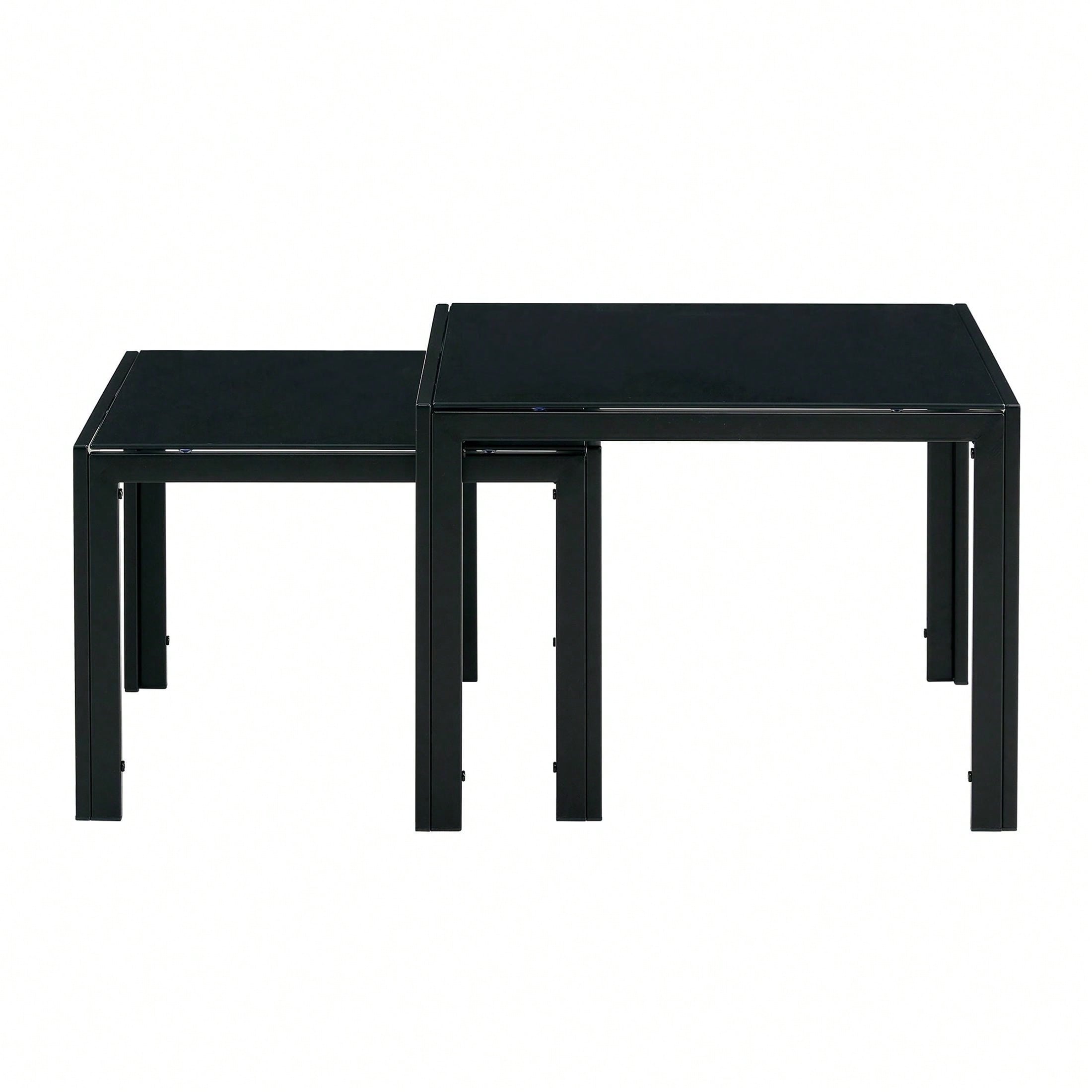 Nesting Coffee Table Set Of 2, Square Modern Stacking Table With Tempered Glass Finish For Living Room