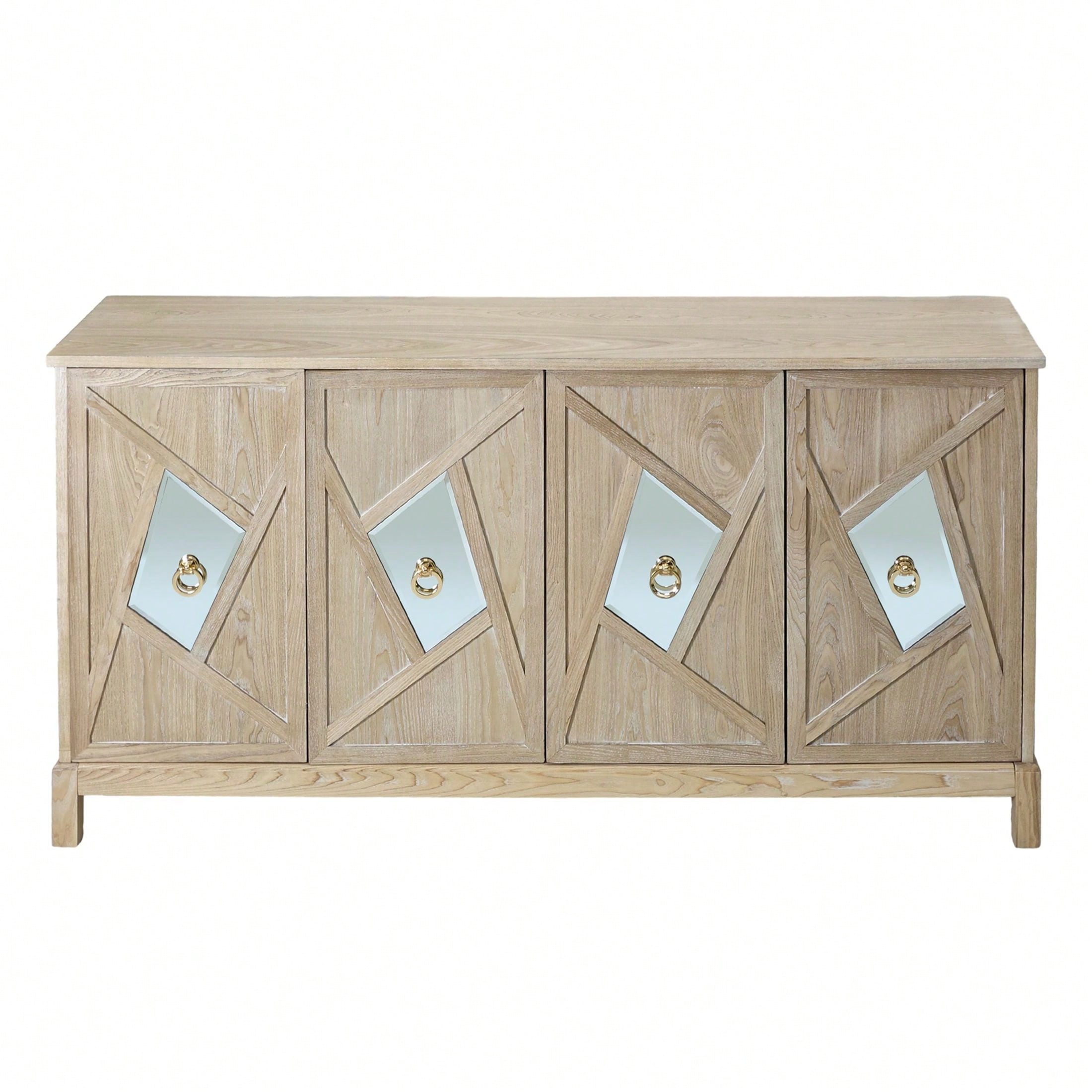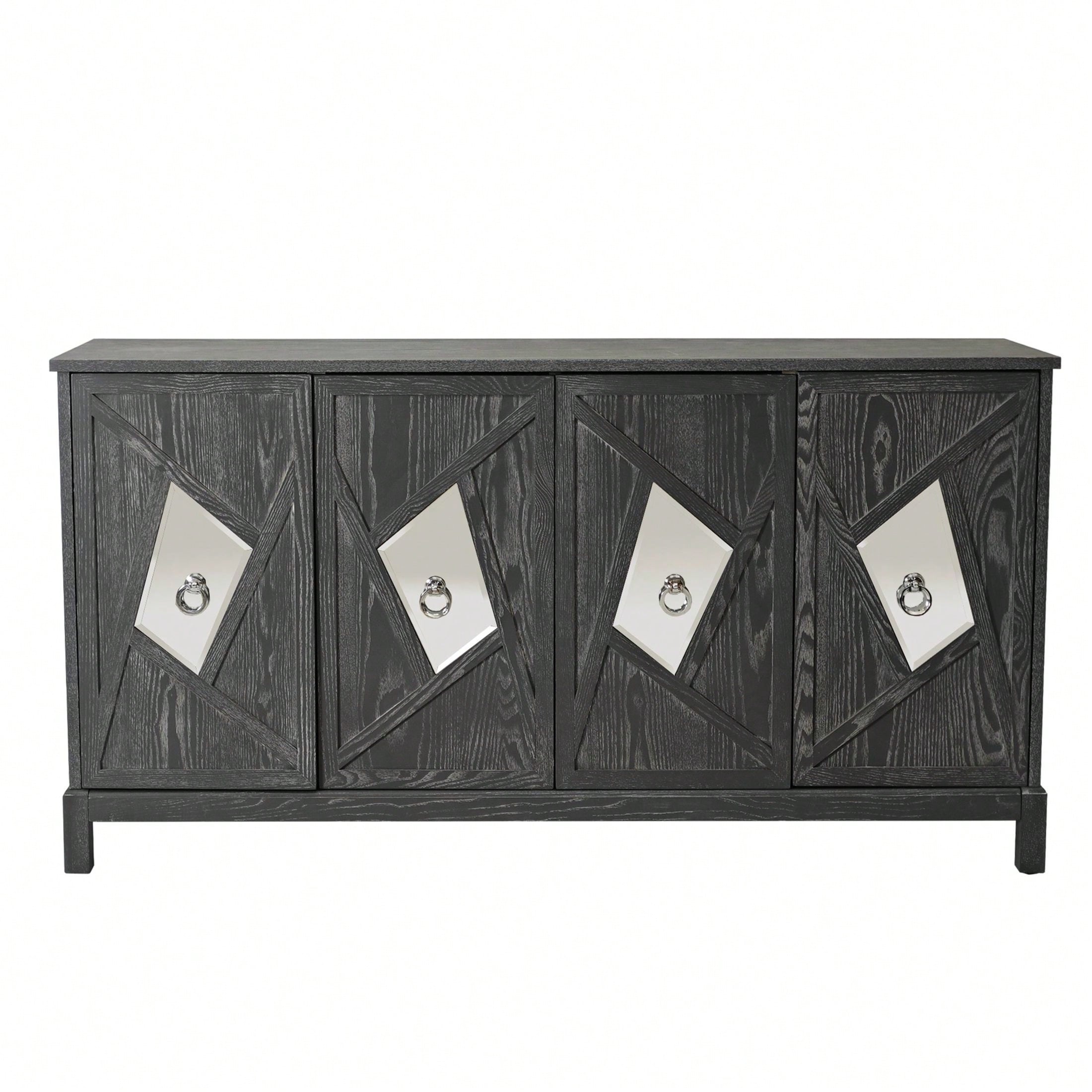 4-Door Cabinet With Mirrored Decorative Doors,For Bedroom,Living Room,Office,Easy Assembly