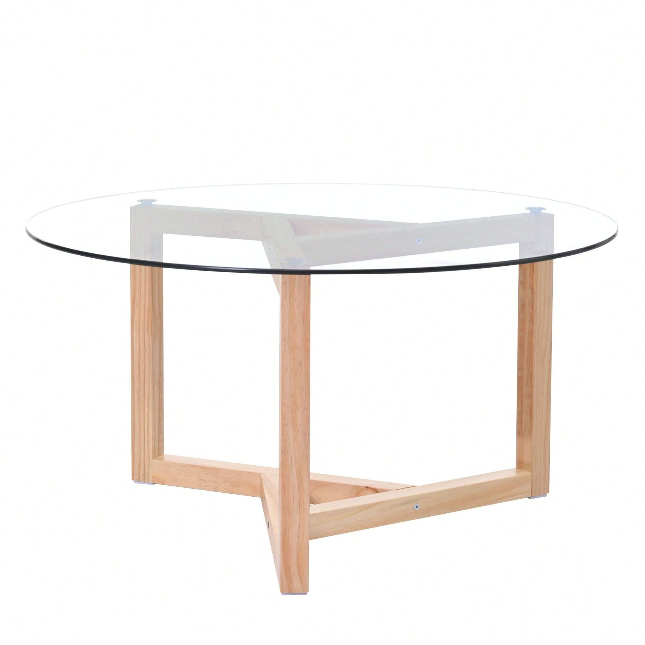 Round Glass Coffee Table Modern Cocktail Table Easy Assembly With Tempered Glass Top & Sturdy Wood Base