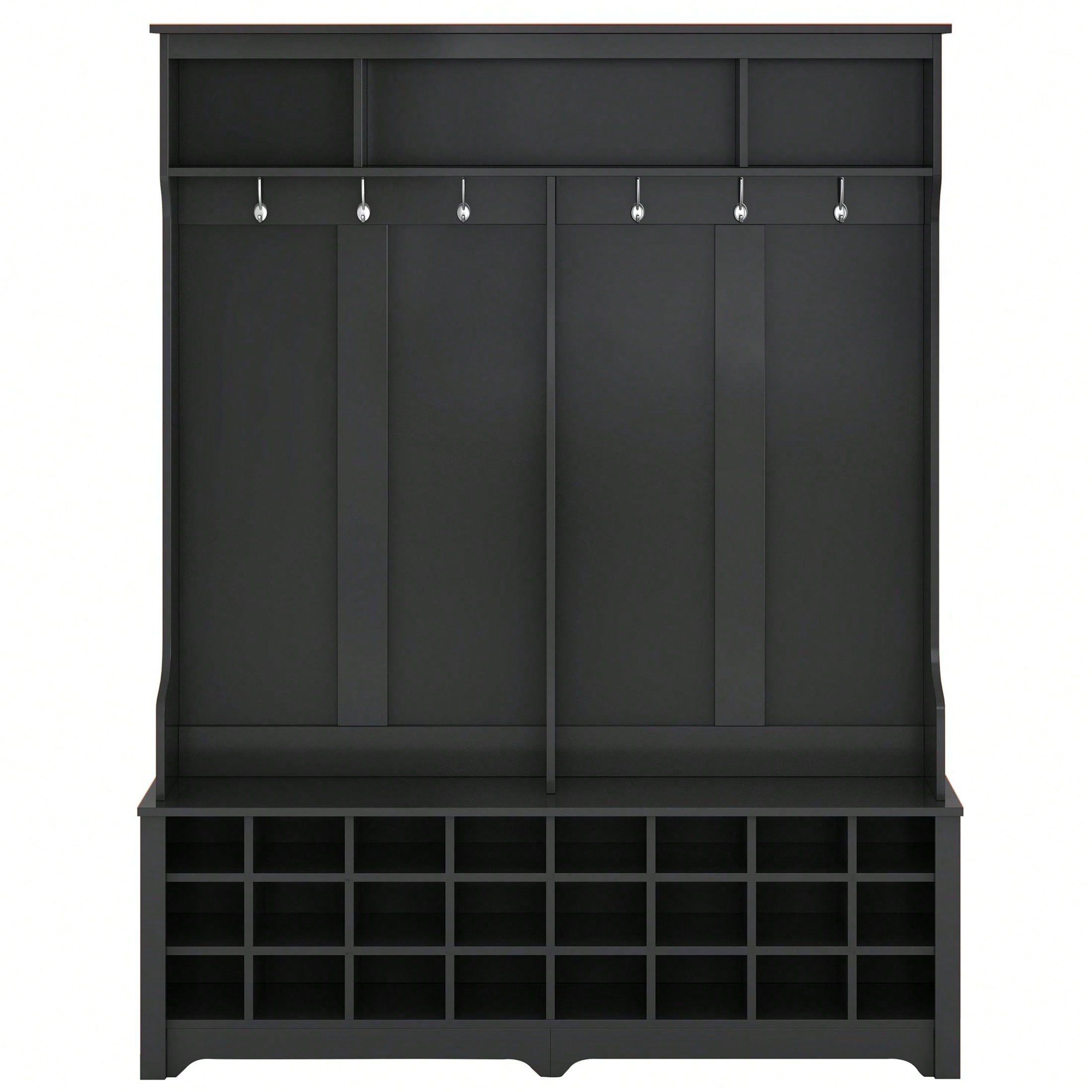 Modern Multifunctional Hallway Coat Rack and Entryway Bench with 24 Shoe Cubbies and Ample Storage Space