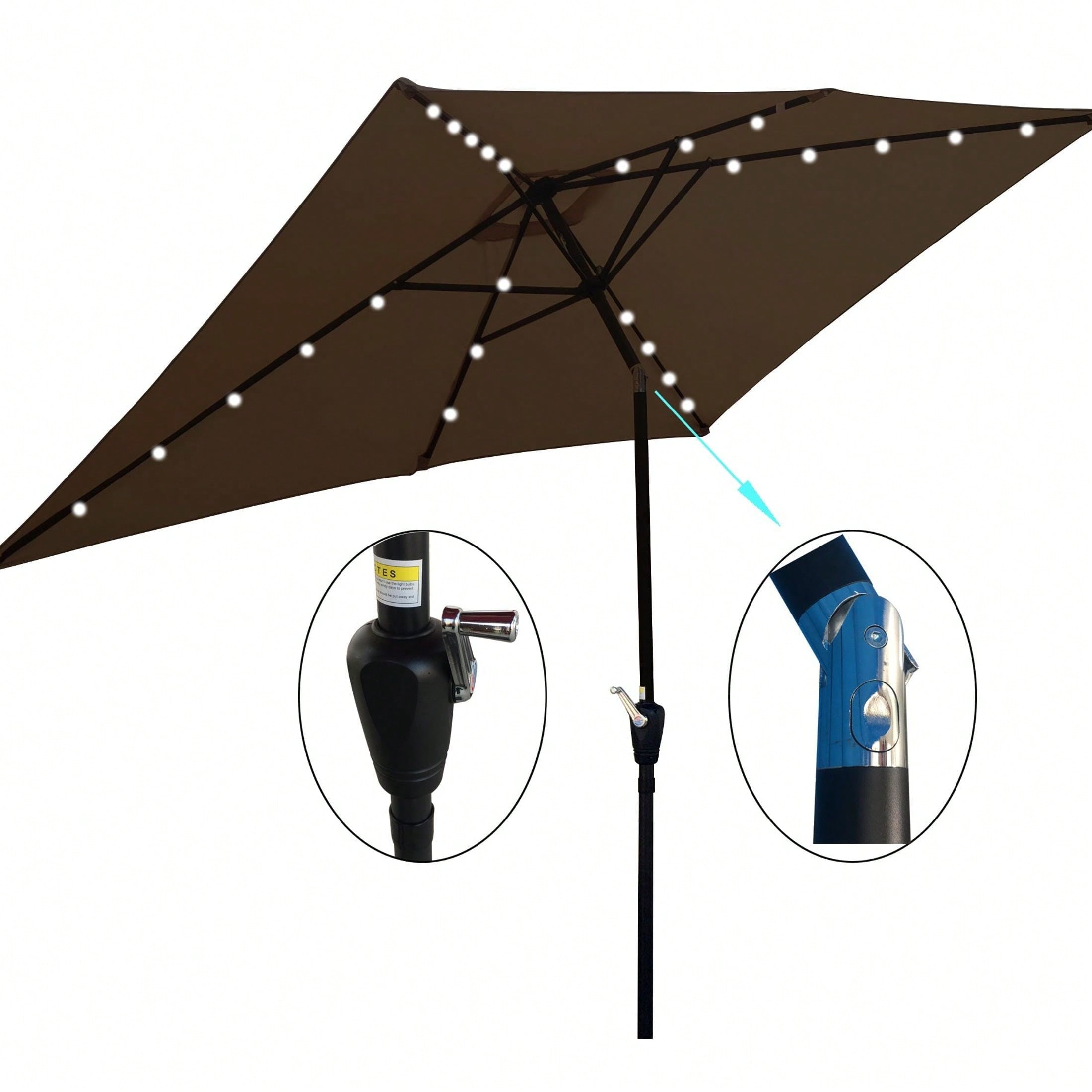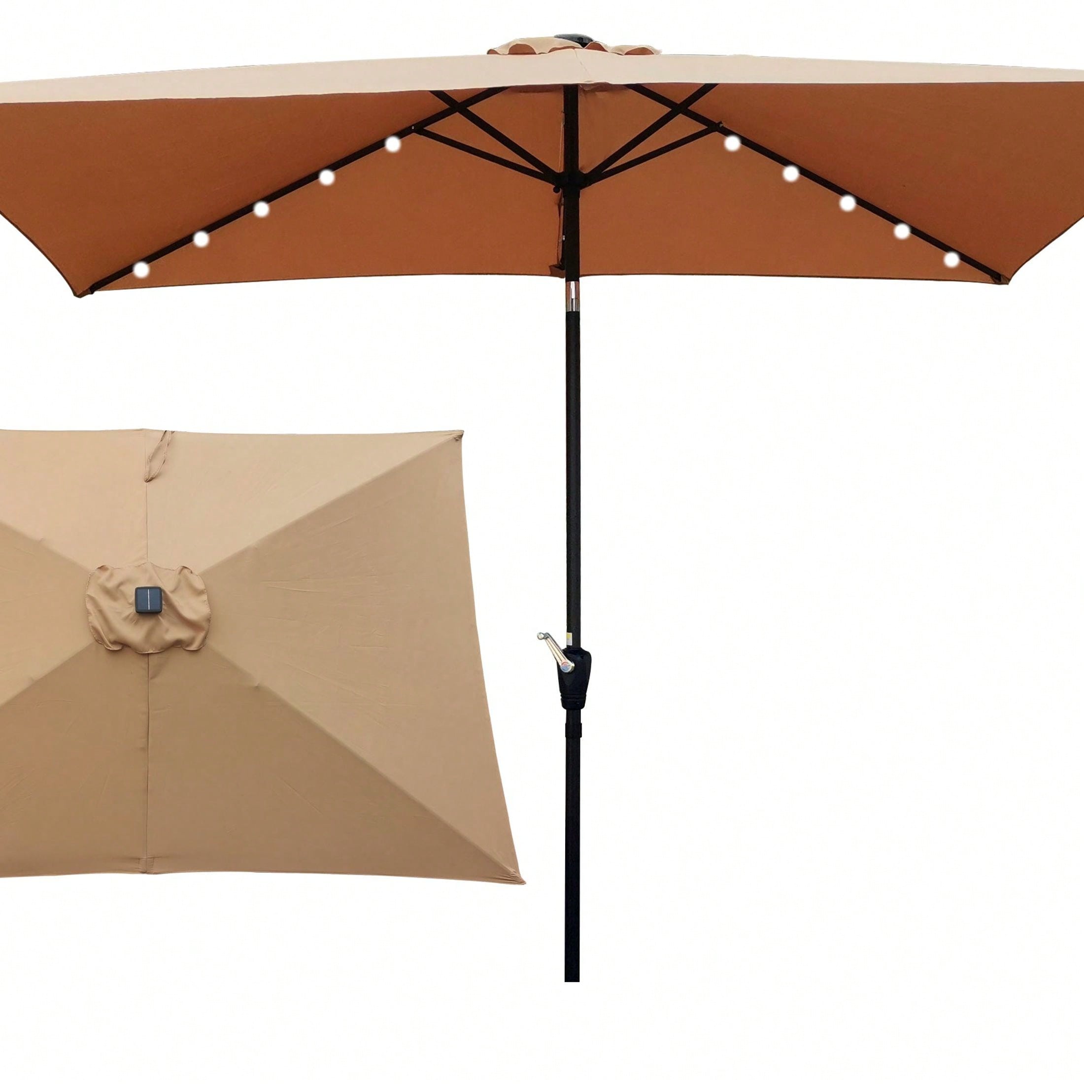 10 X 6.5 Ft Rectangular Solar LED Lighted Outdoor Market Umbrellas With Crank & Push Button Tilt For Garden Shade Outside Swimming Pool