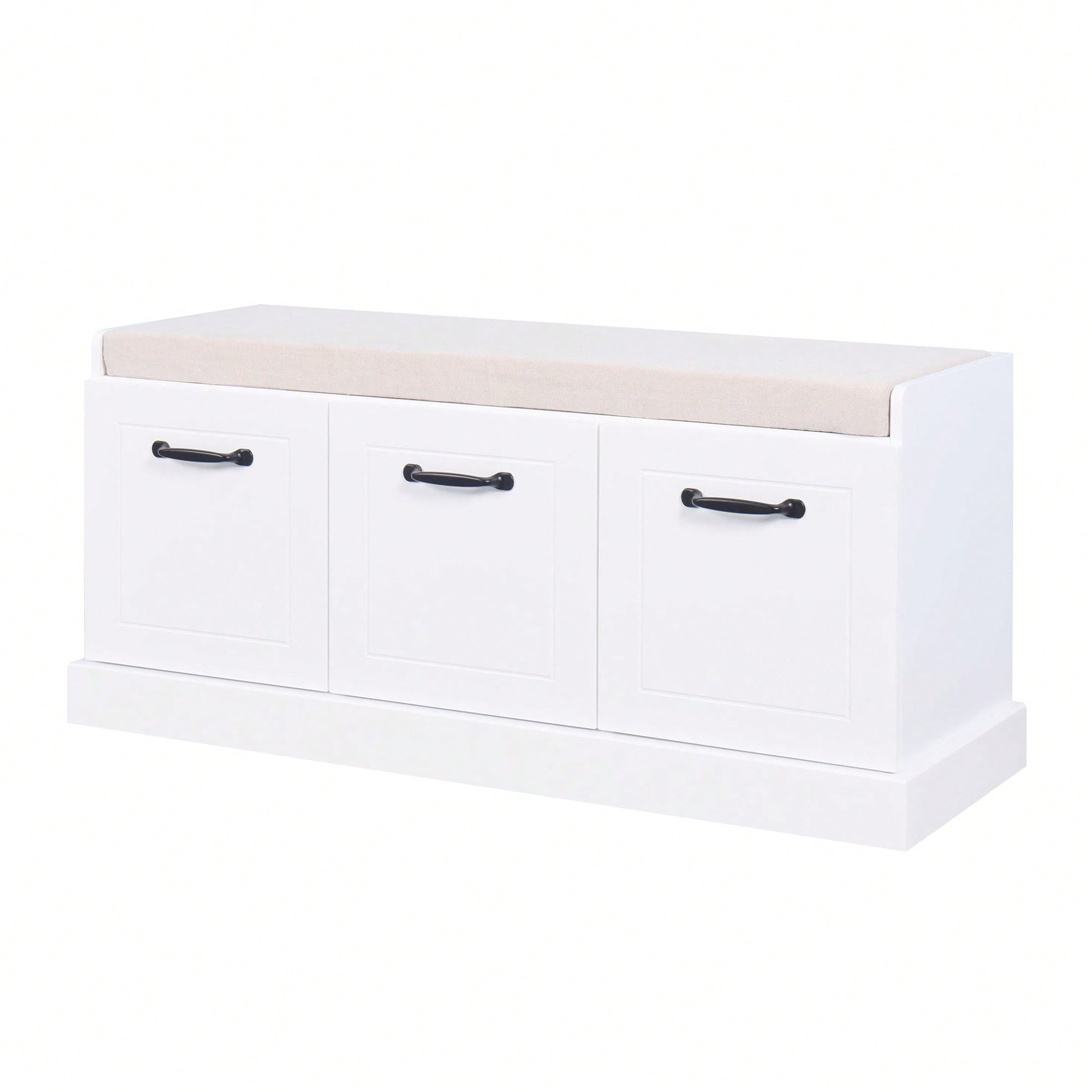 Wooden Entryway Shoe Cabinet Living Room Storage Bench With White Cushion