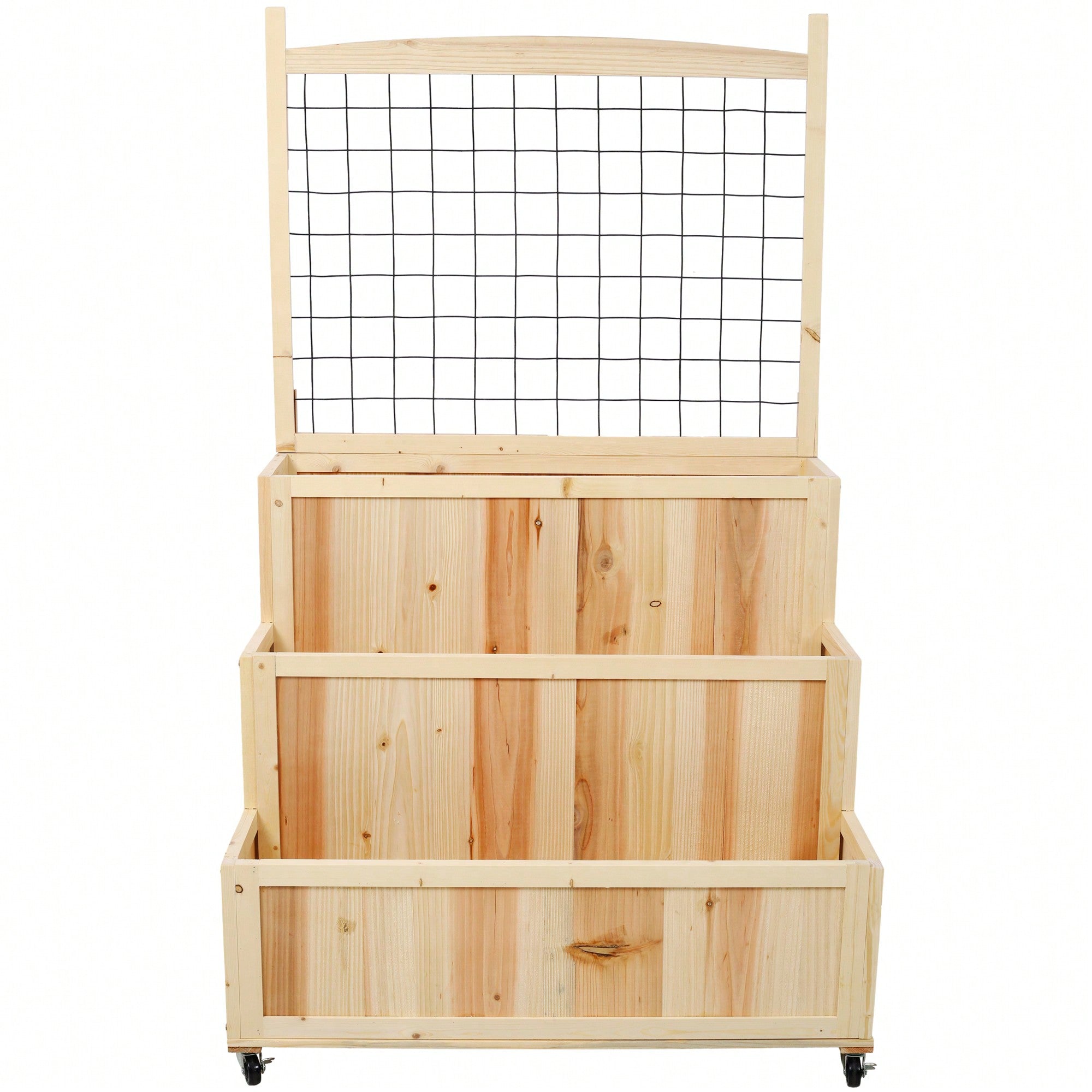 Vertical 3-Tiered Garden Bed With Trellis And Wheels - 53" High Planter Box & Back Storage For Flowers, Vegetables, And Herbs