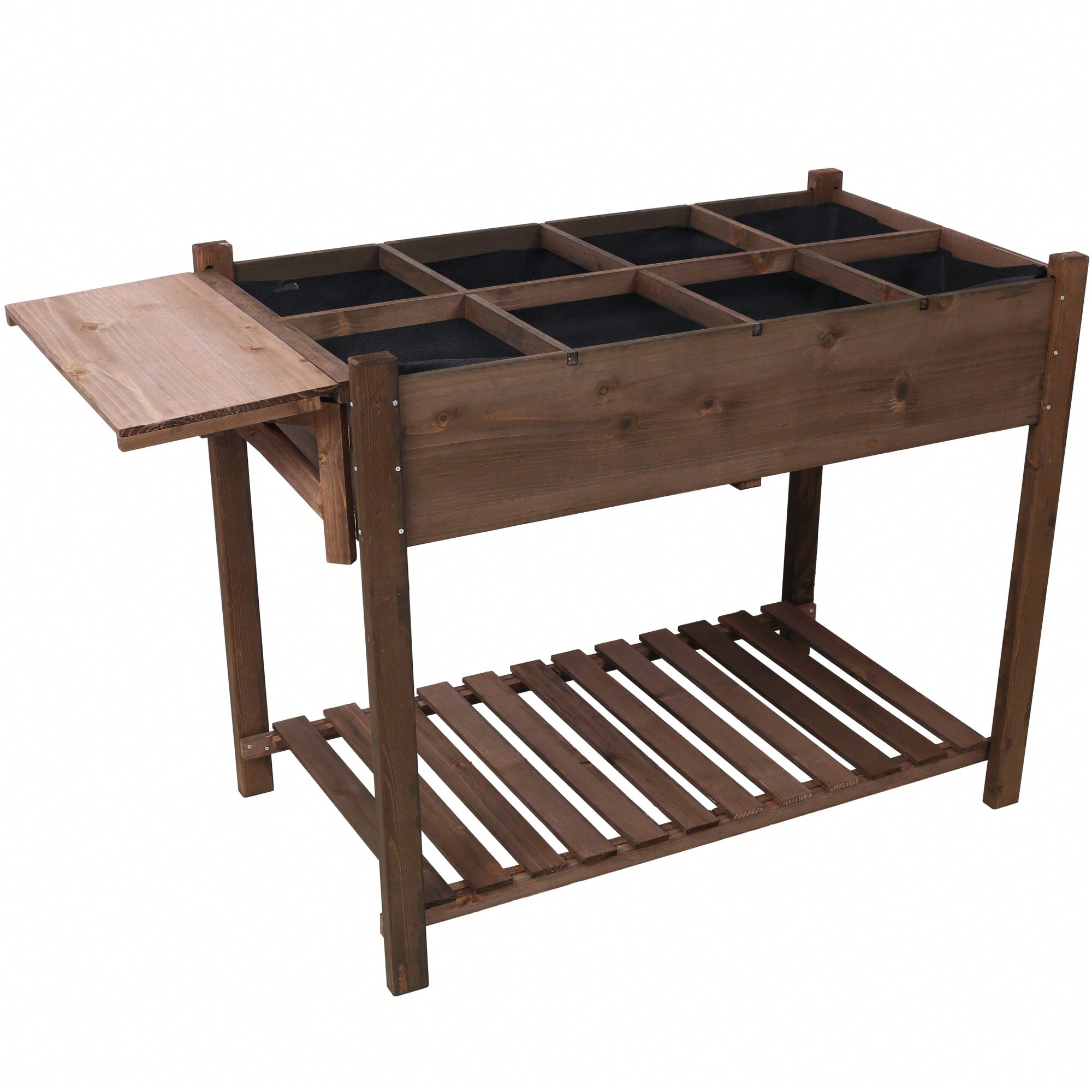 Elevated Wood Planter Box With 8 Pockets, Foldable Side Table, And Storage Shelf For Herbs, Vegetables, And Flowers - Dark Brown Garden Bed