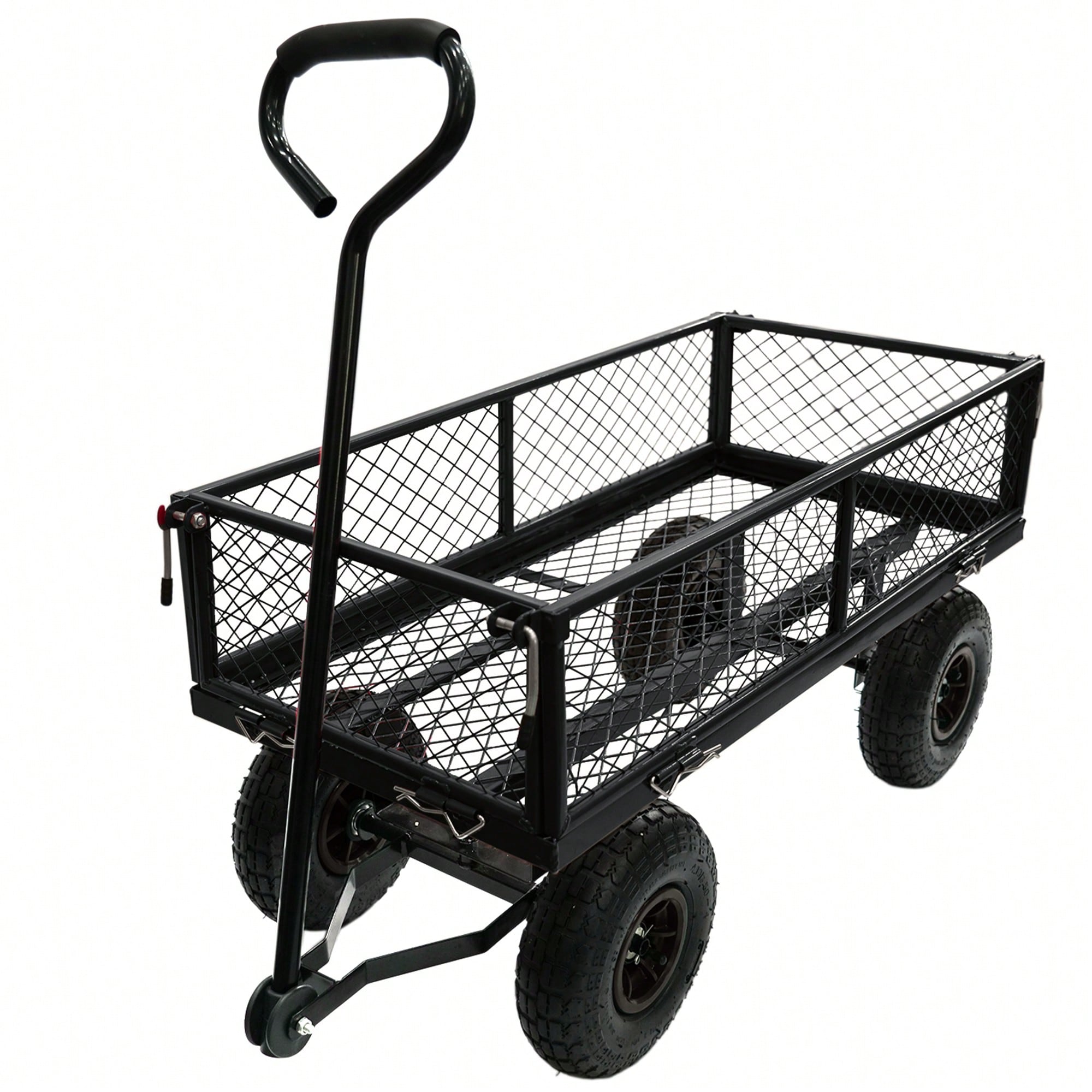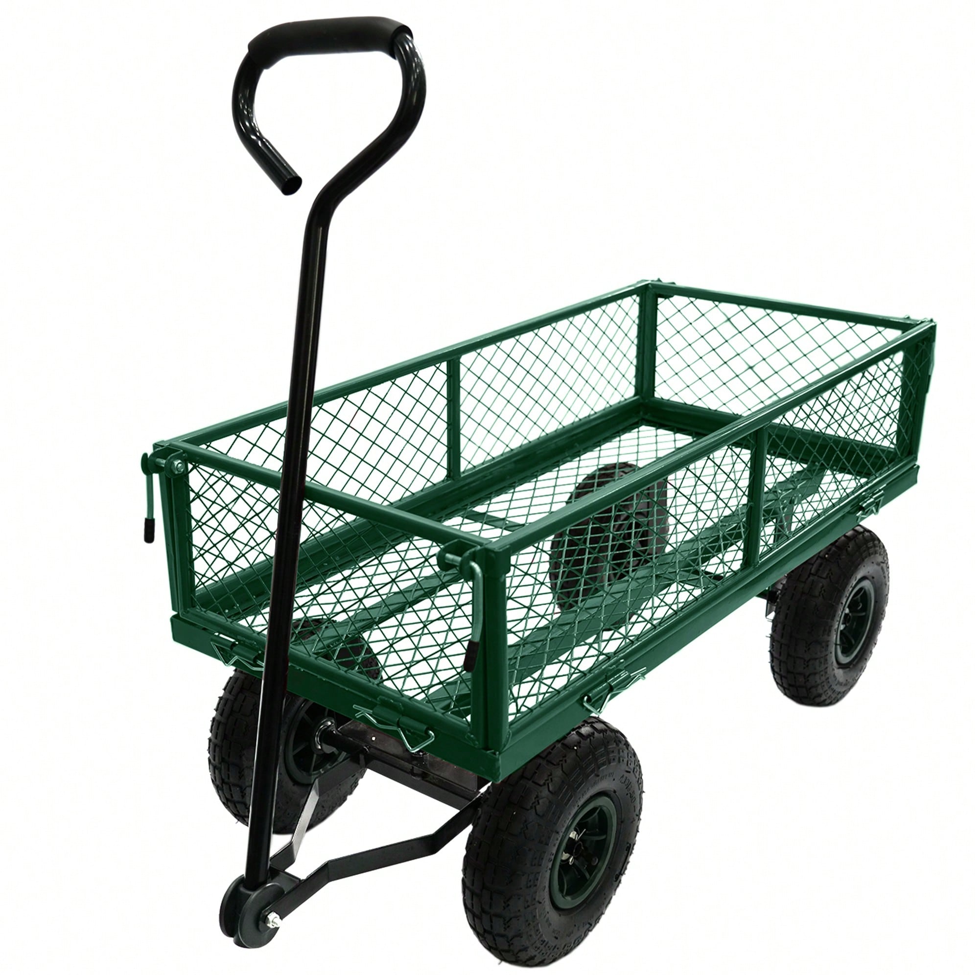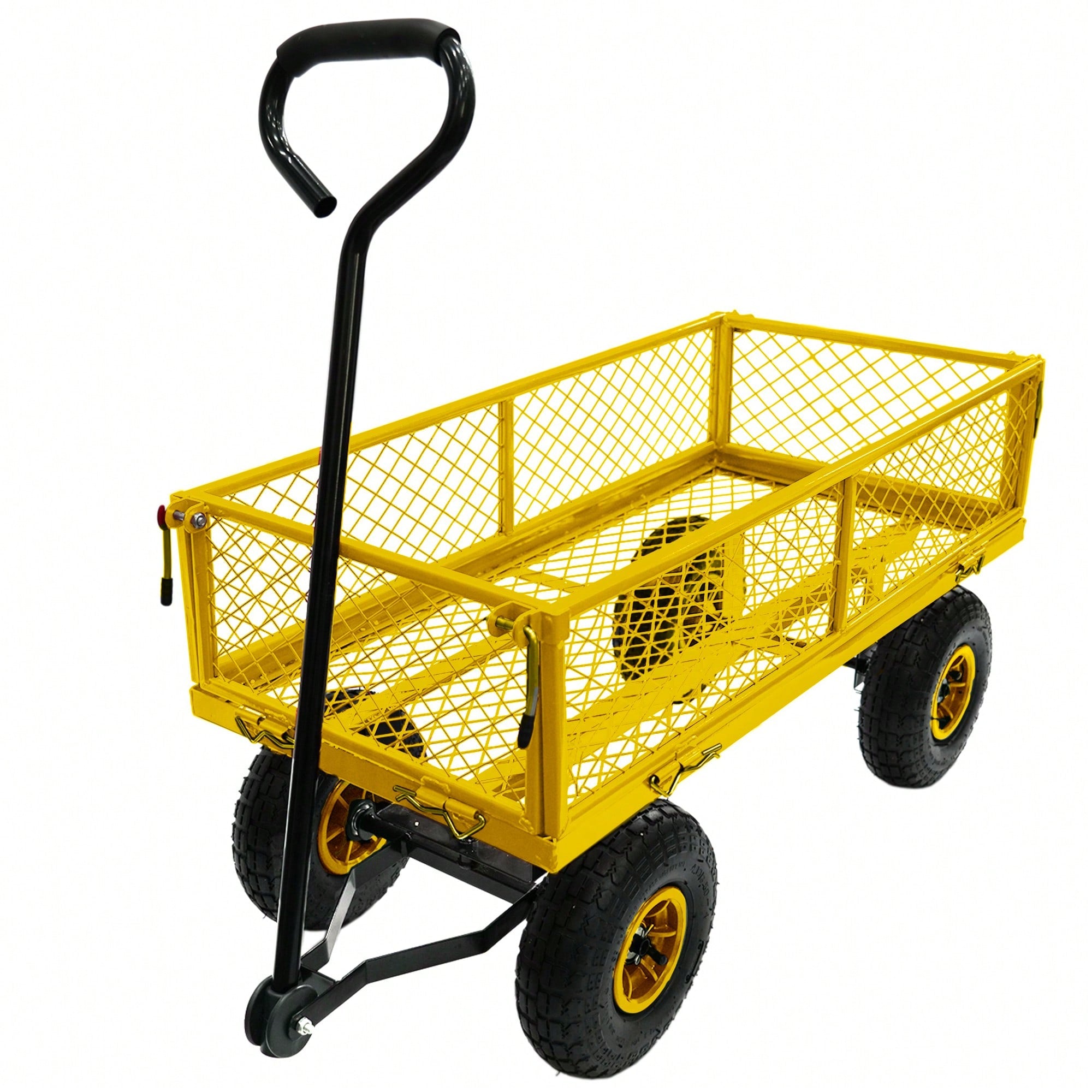 Heavy-Duty 3 Cu. Ft. Utility Wagon With Removable Sides - 300 Lbs. Capacity Steel Mesh Cart For Outdoor Garden Use - Bright Yellow