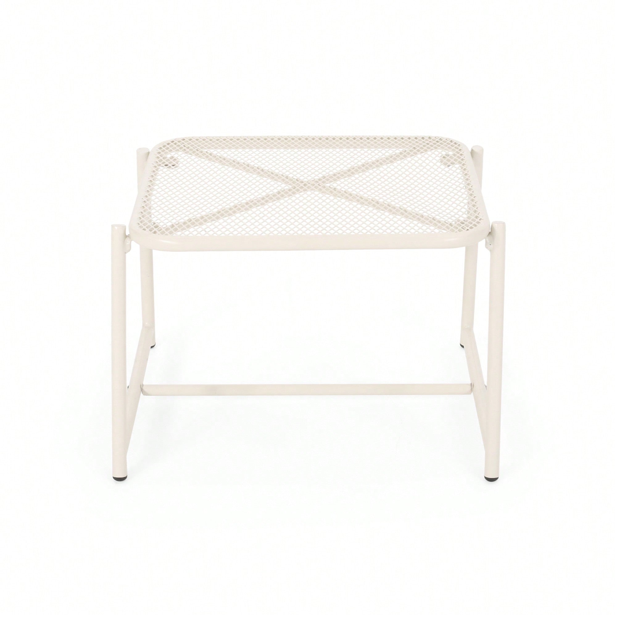 Modern White Iron Outdoor Side Table With Mesh Top And Sled Base 13 Inches High