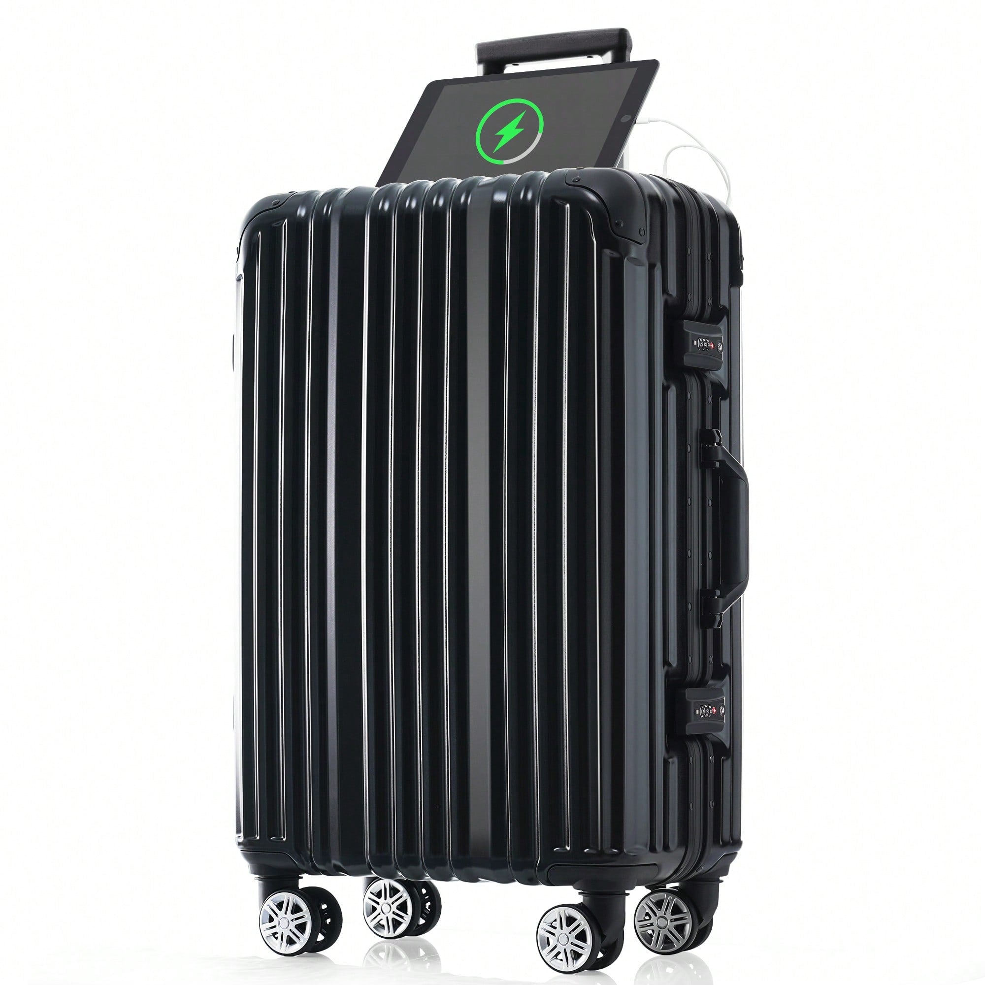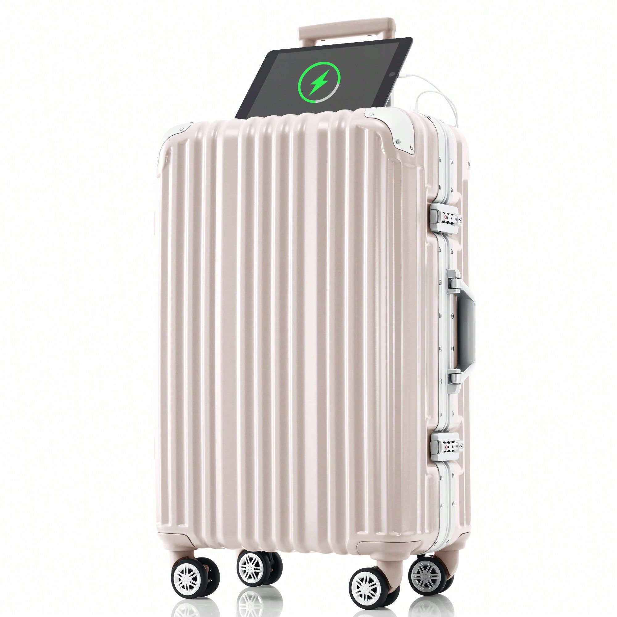 20in Aluminum Carry-On Luggage with USB Port Spinner Wheels TSA Lock and Cup Holder for Travel Business and Beach