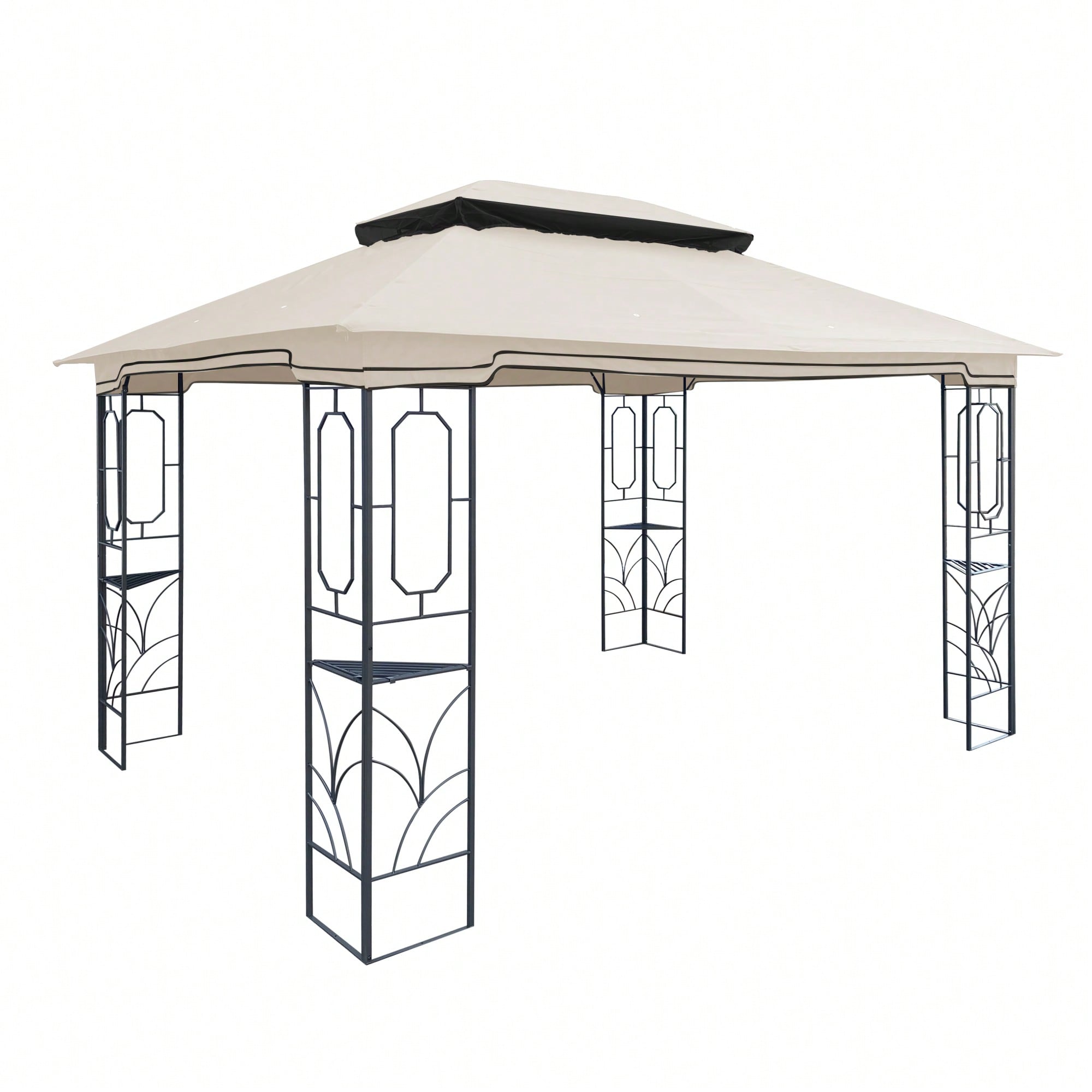 13x10 Ft Double Roof Patio Gazebo Replacement Canopy Top Fabric UV Protection Water-Repellent