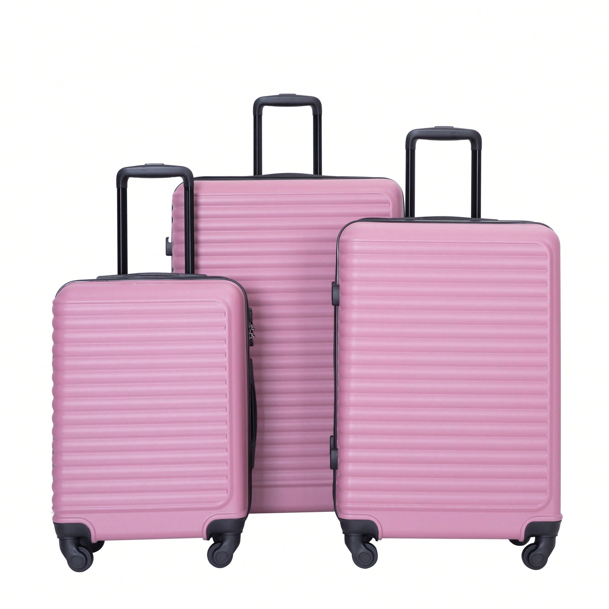 Stylish 3-Piece Lightweight Luggage Set With Spinner Wheels, Two Hooks & TSA Lock - Pink Suits For Travel (20/24/28)