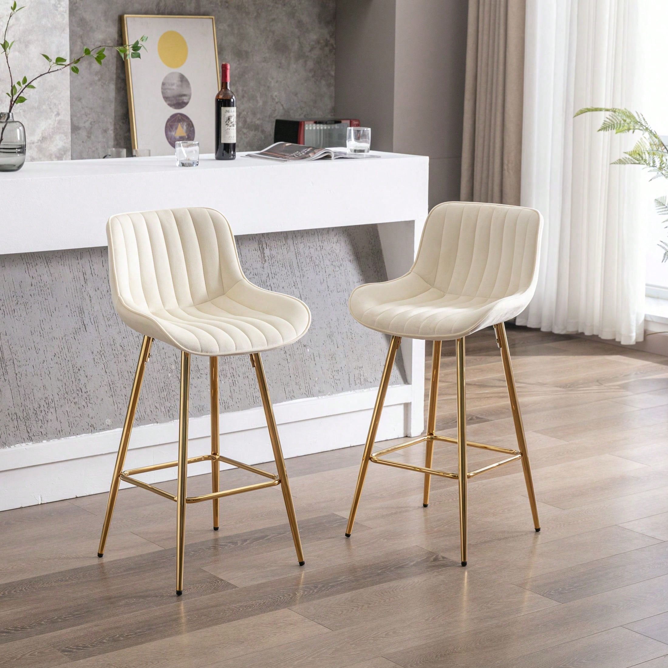Set Of 2 Bar Stools,With Chrome Footrest Velvet Fabric Counter Stool Golden Leg Simple Bar Stool