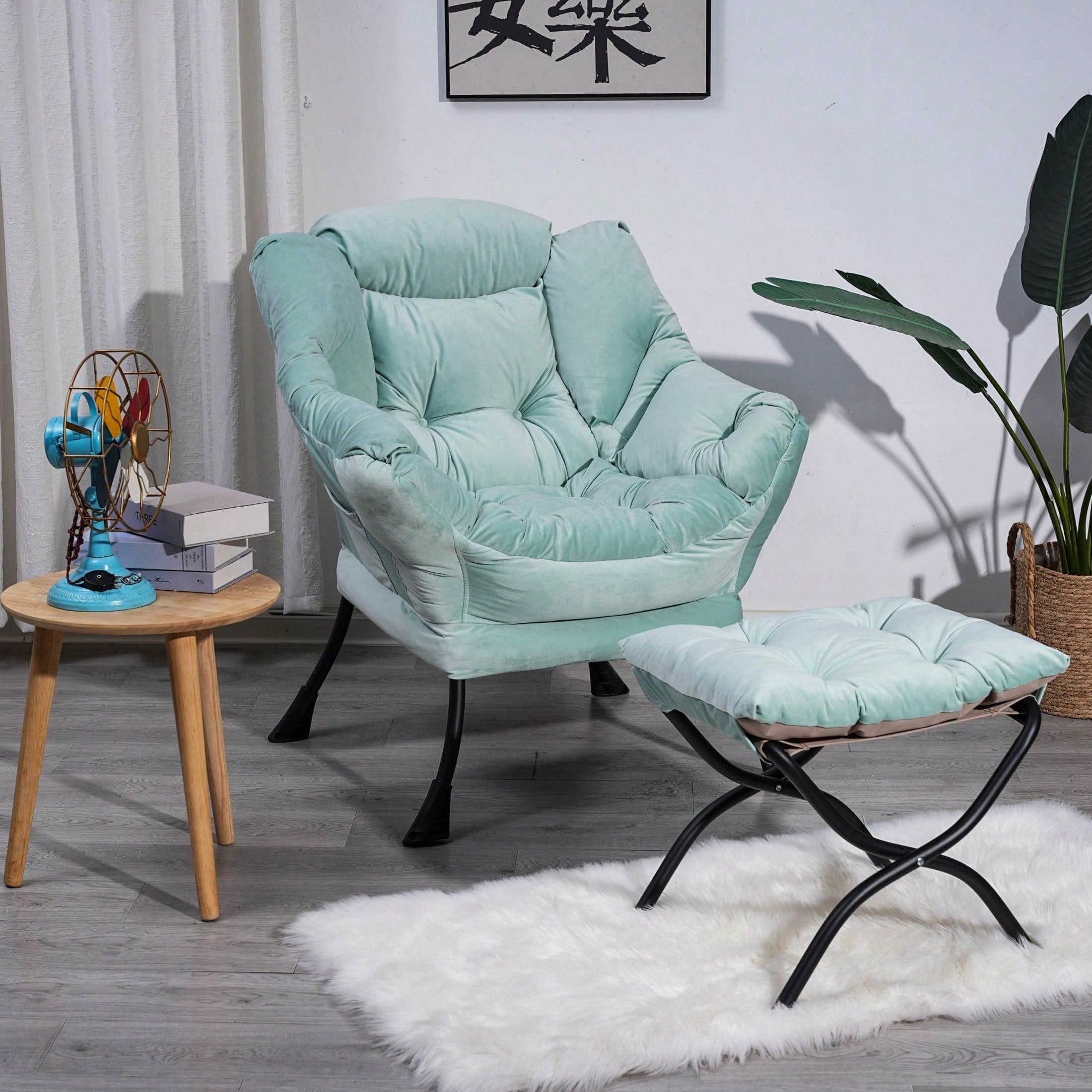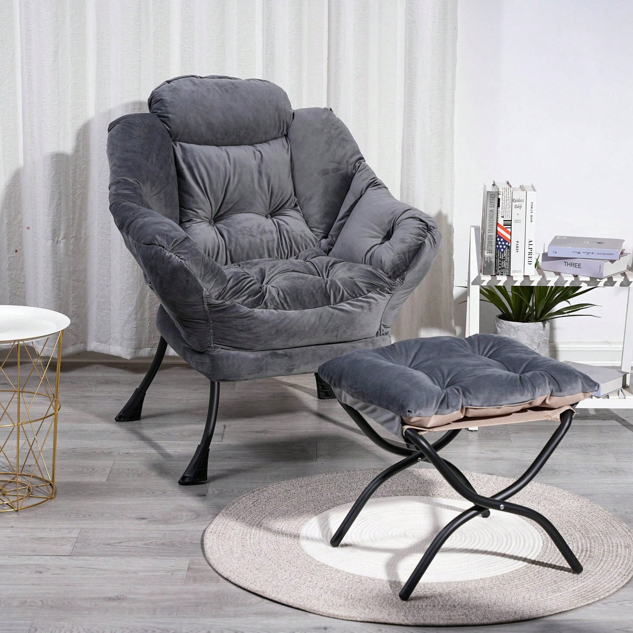 Modern Cotton Fabric Lazy Chair, Accent Contemporary Lounge Chair, Single Steel Frame Leisure Sofa Chair With Armrests And A Side Pocket