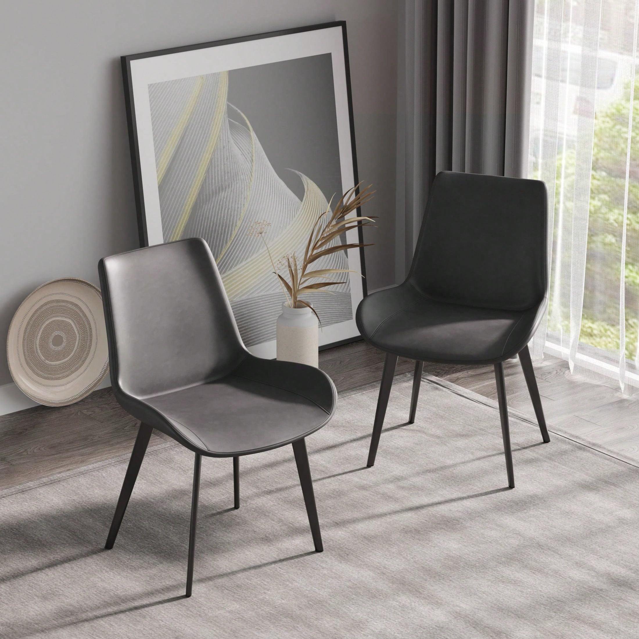 Modern PU Sponge-Filled Dining Chair, Solid Wood Metal Legs, Suitable For Restaurants, Living Rooms And Rooms-(Set Of 2)