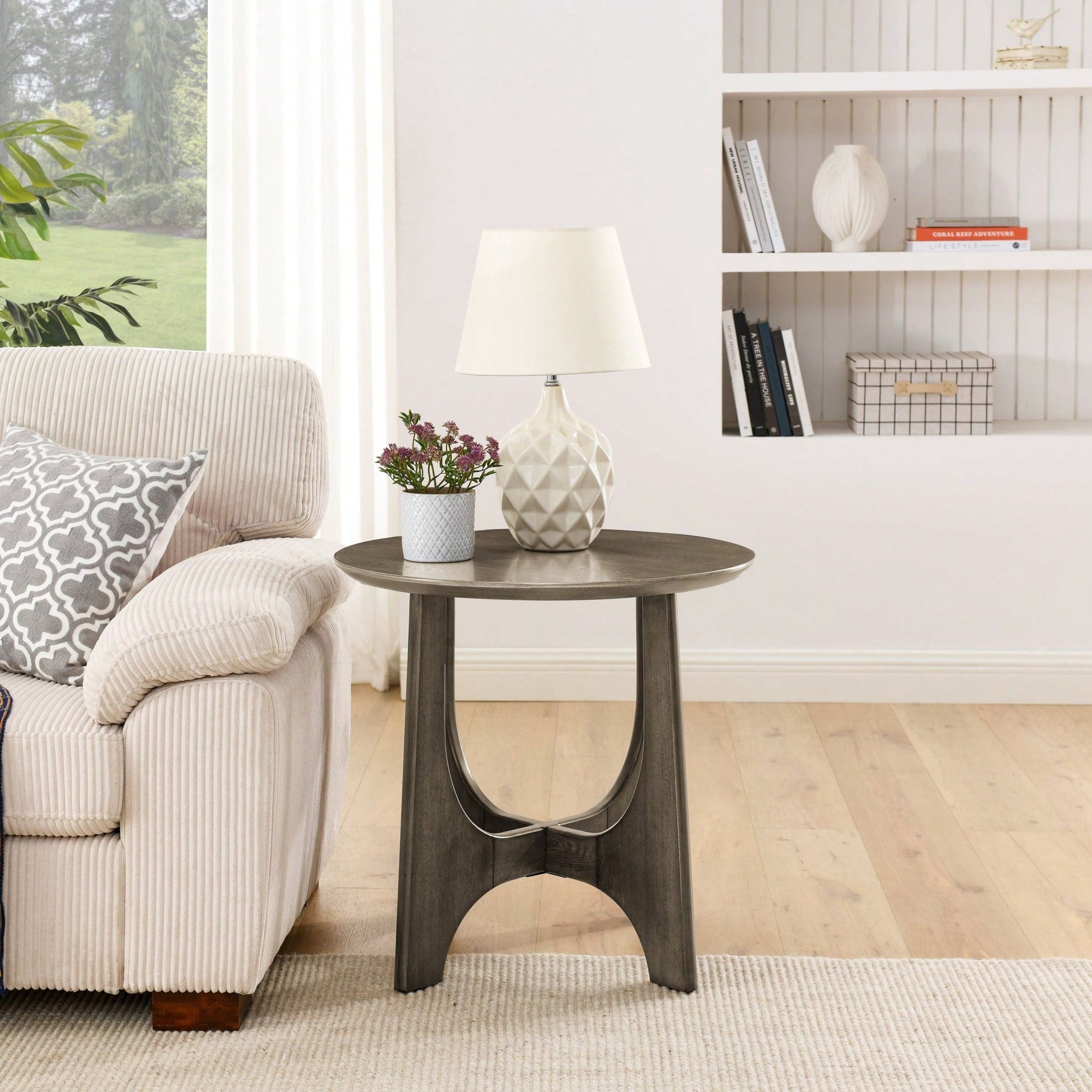 25" Round End Table, Wooden Side Table,Night Stand For Bedroom, Living Room ,Reception Room
