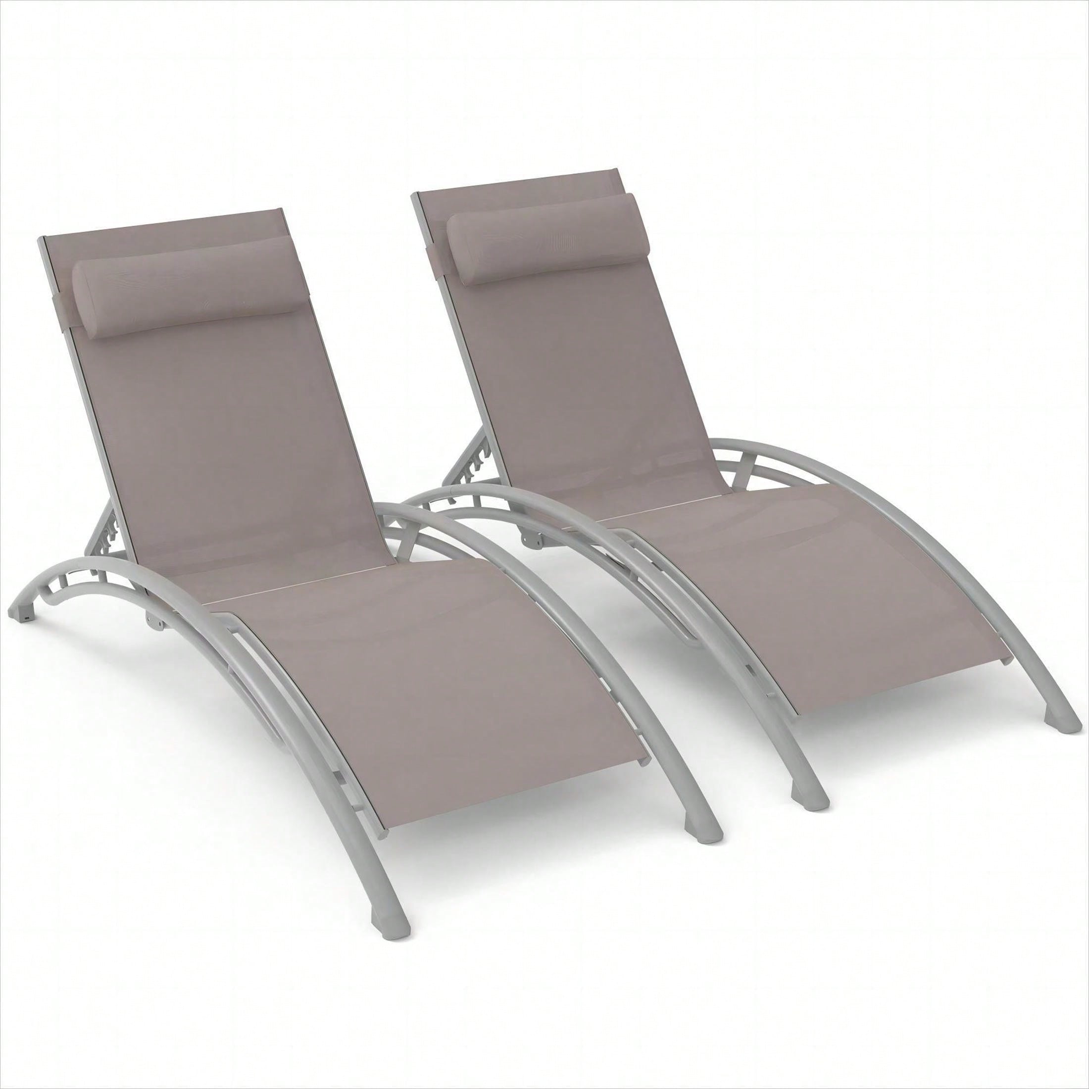 Adjustable Outdoor Chaise Lounge Set of 2 with Removable Pillows for Patio Beach Pool Sunbathing